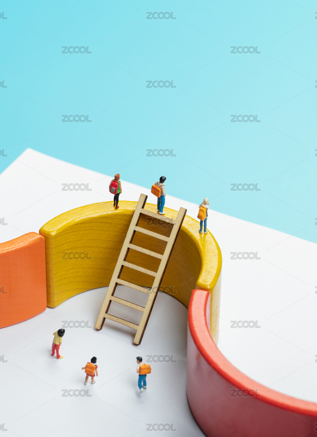 被铅笔围困在墙脚的上学儿童微缩创意图