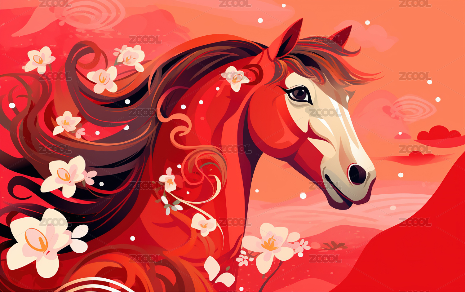 中国,马年,马,可爱,萌,呆萌,红色,肖像,传统,文化