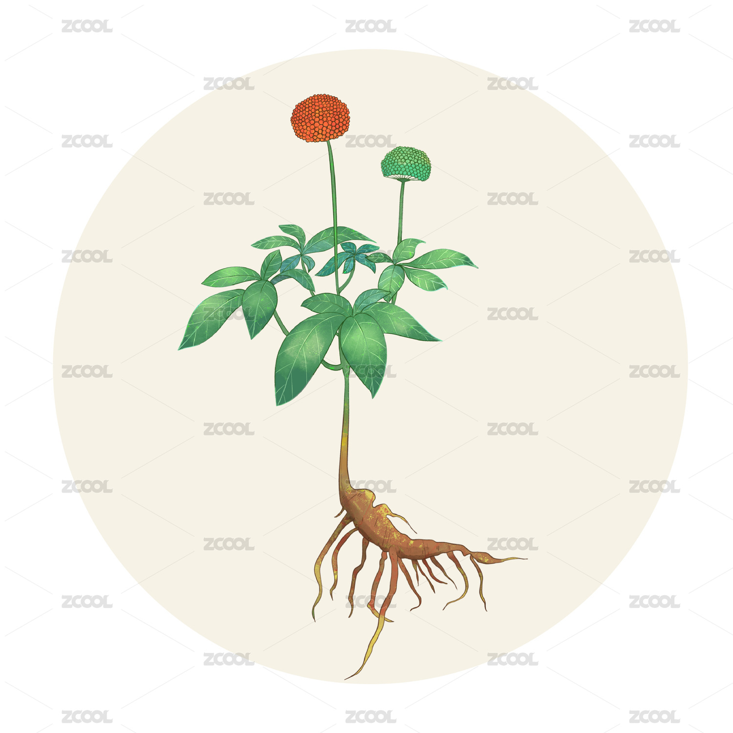 中药材,人参,插画,中草药,草药,中医,中国,传统,医药