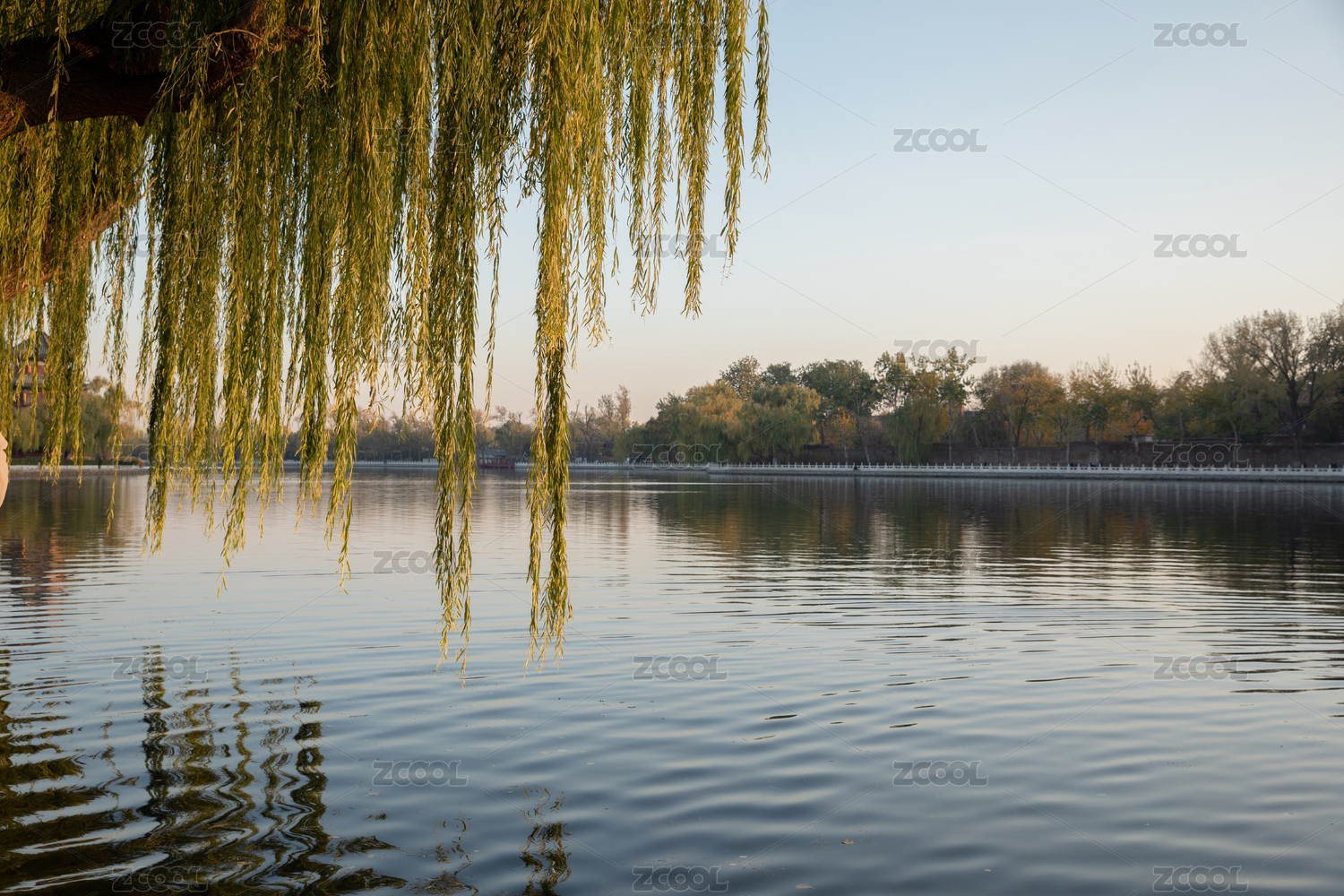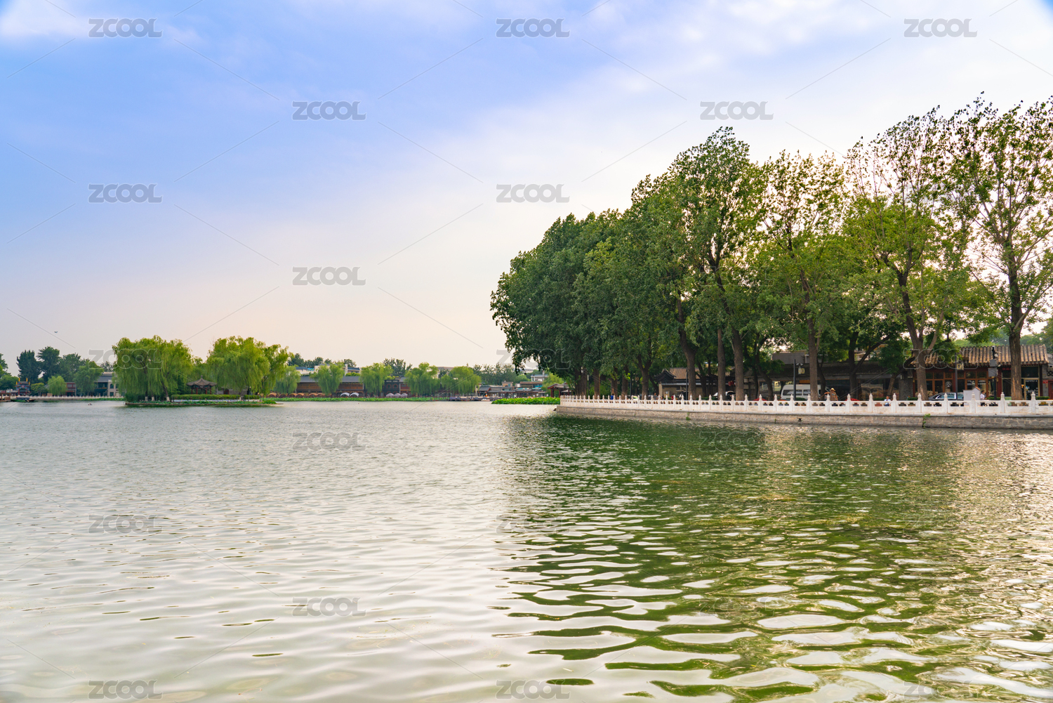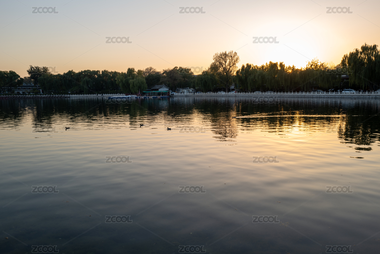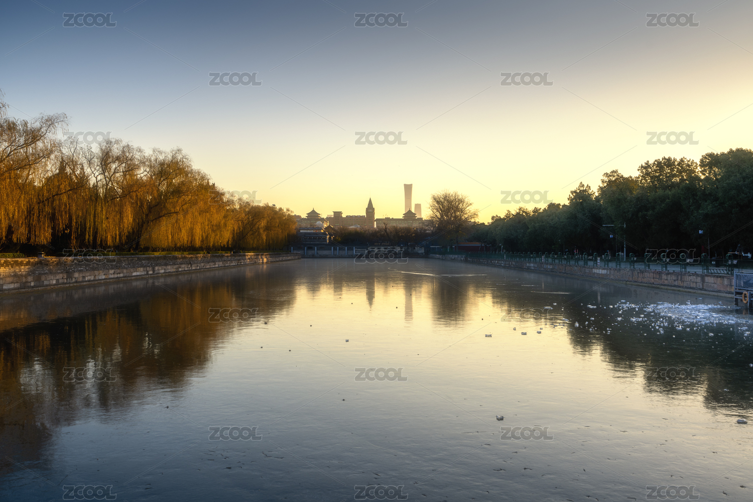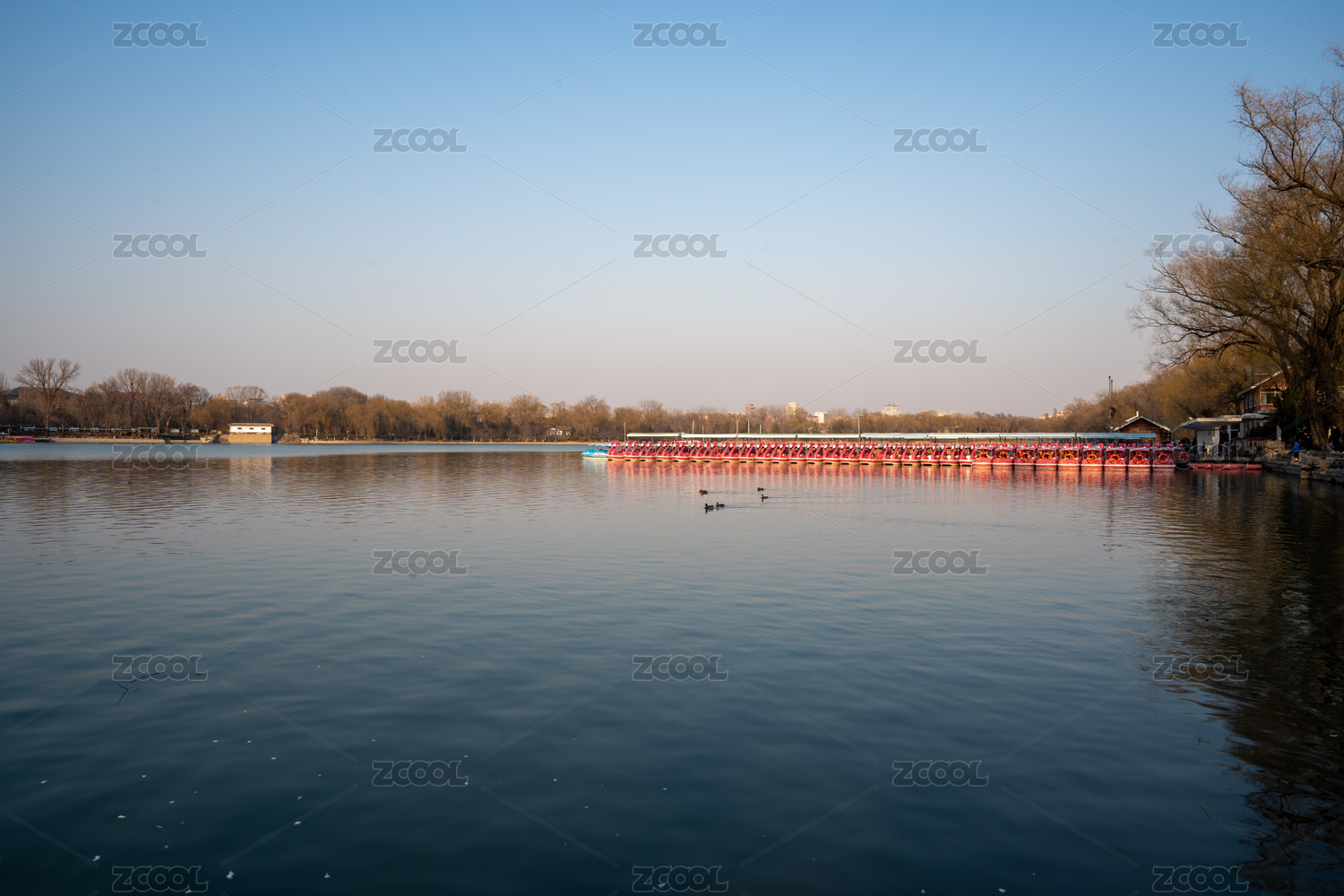 初冬时节碧空映衬下的北京什刹海后海景区风