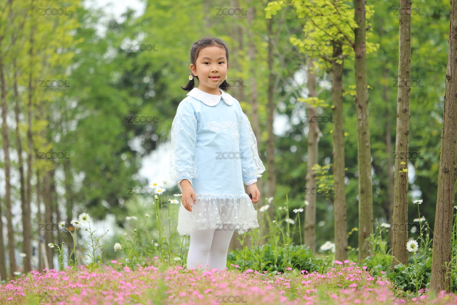 在花园里玩耍的小女孩