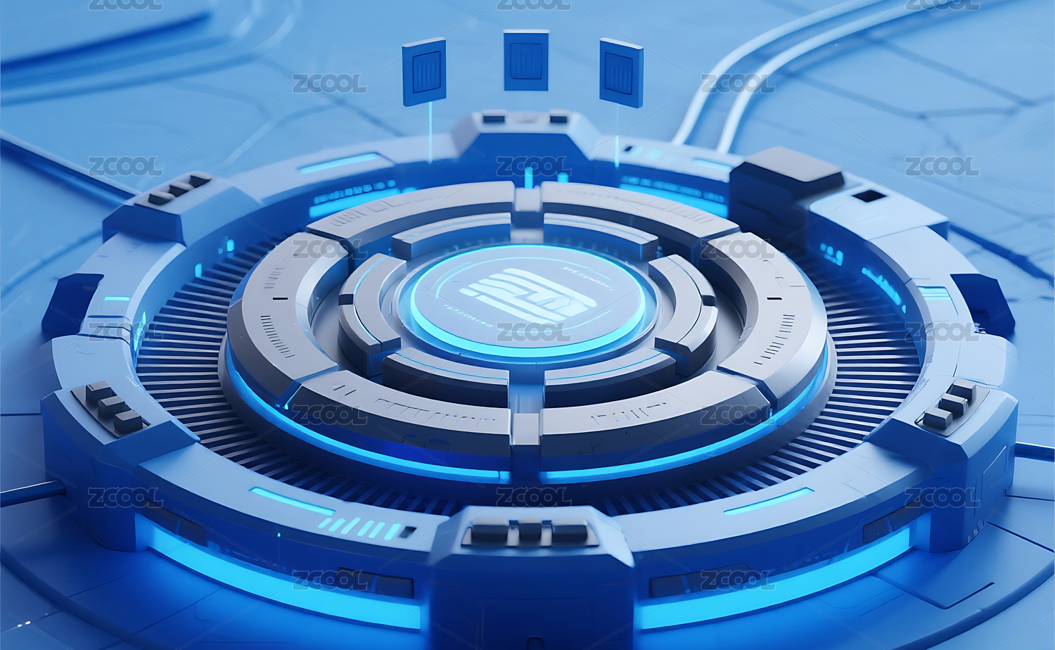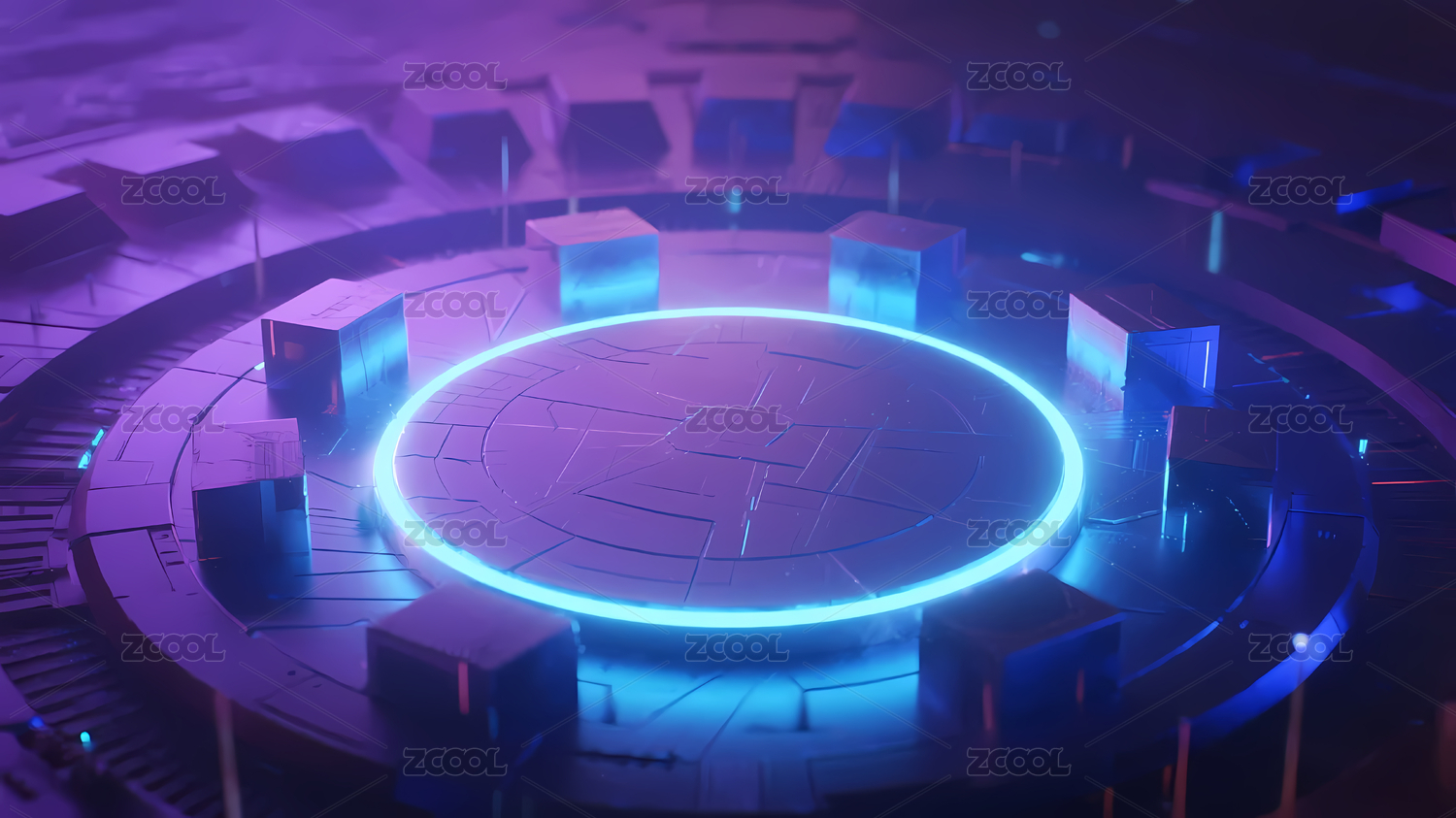 未来,科技,核心,金属,光线,环形,结构,蓝色,发光,旋转