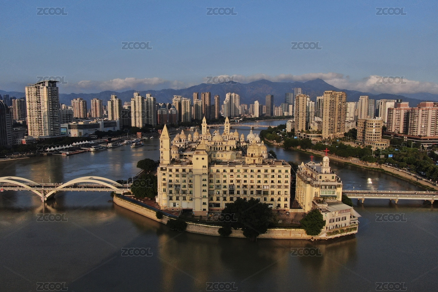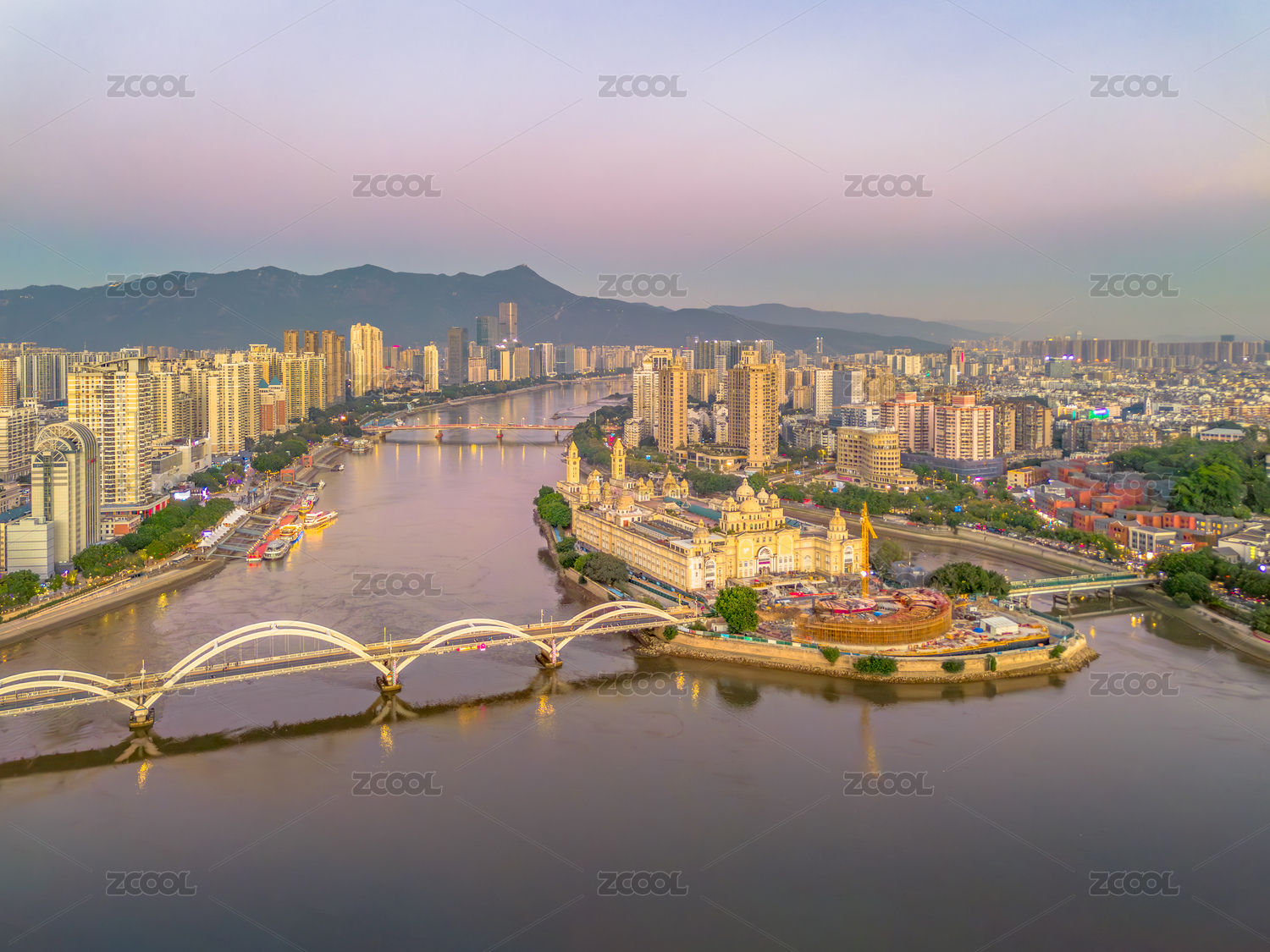 夕阳下的福州中洲岛
