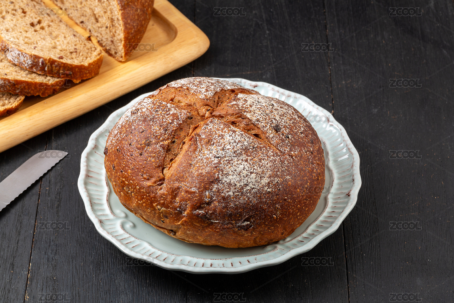 木板上的全麦欧包