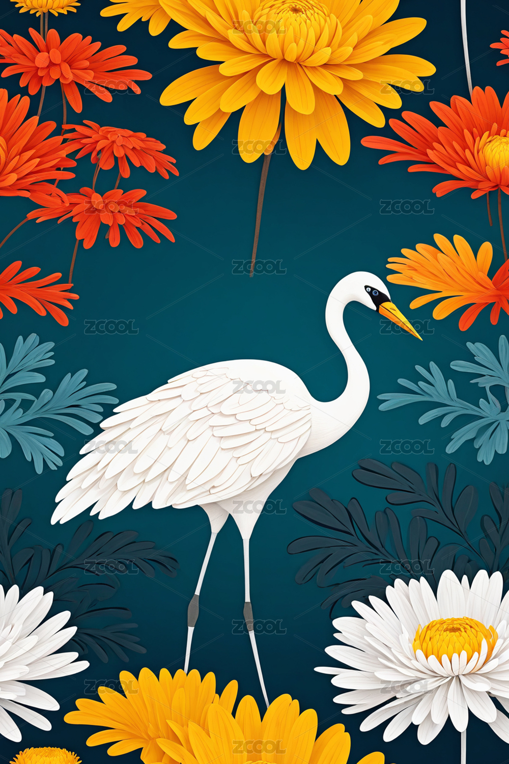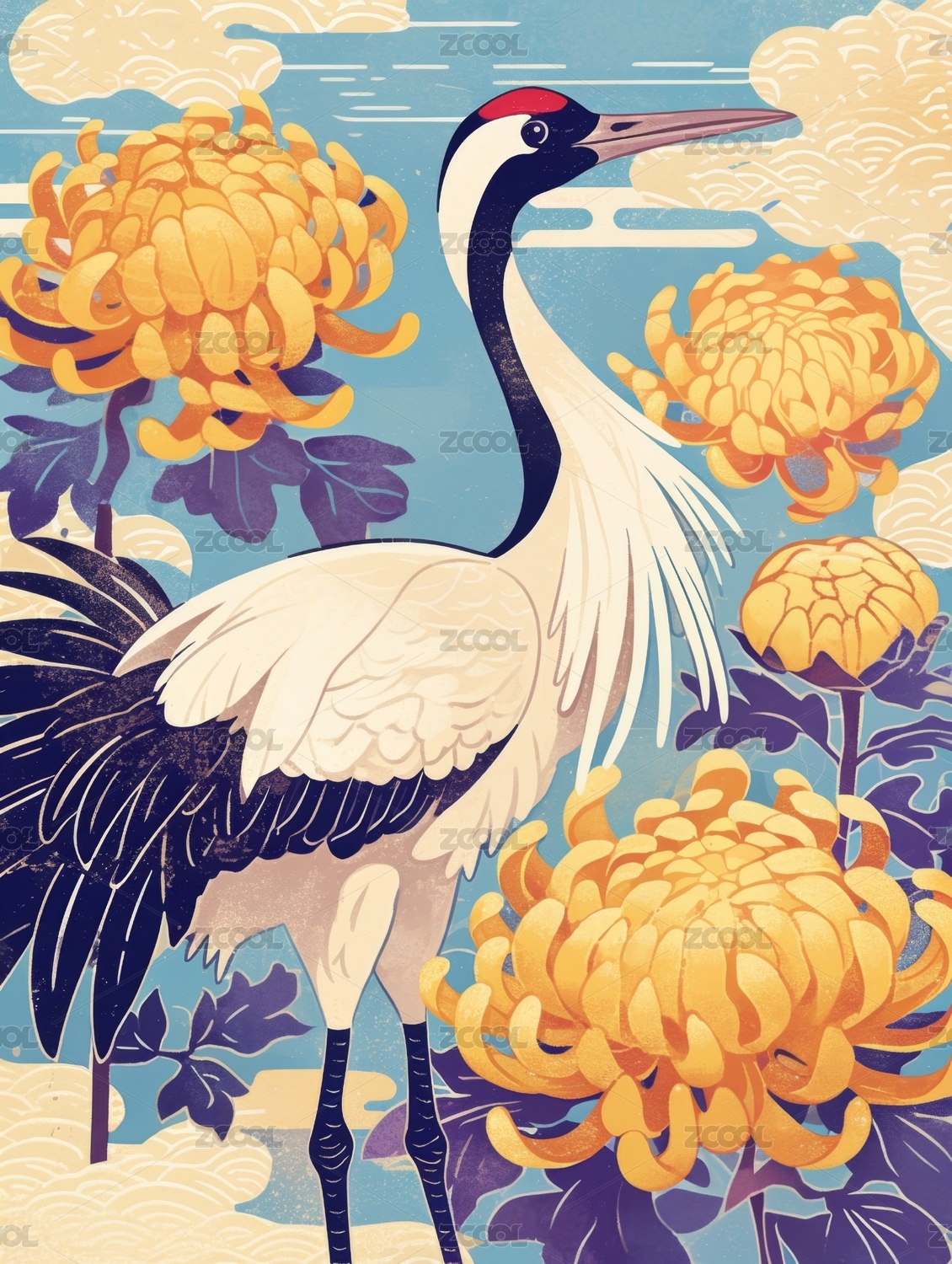 中国风瑞鹤菊花重阳节插画