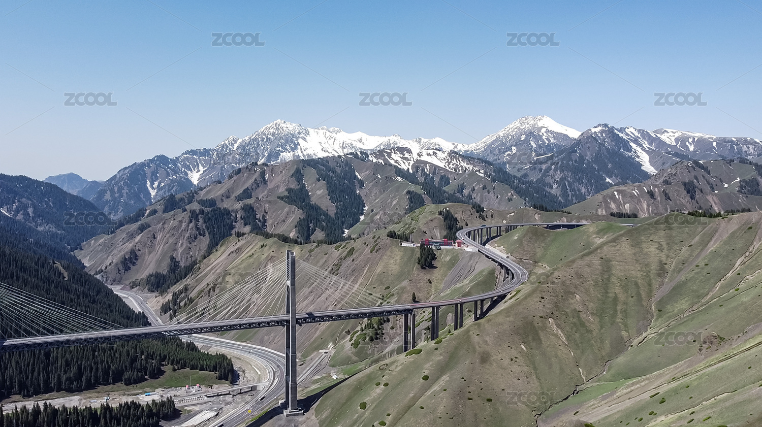 中国新疆伊犁果子沟大桥建筑风景