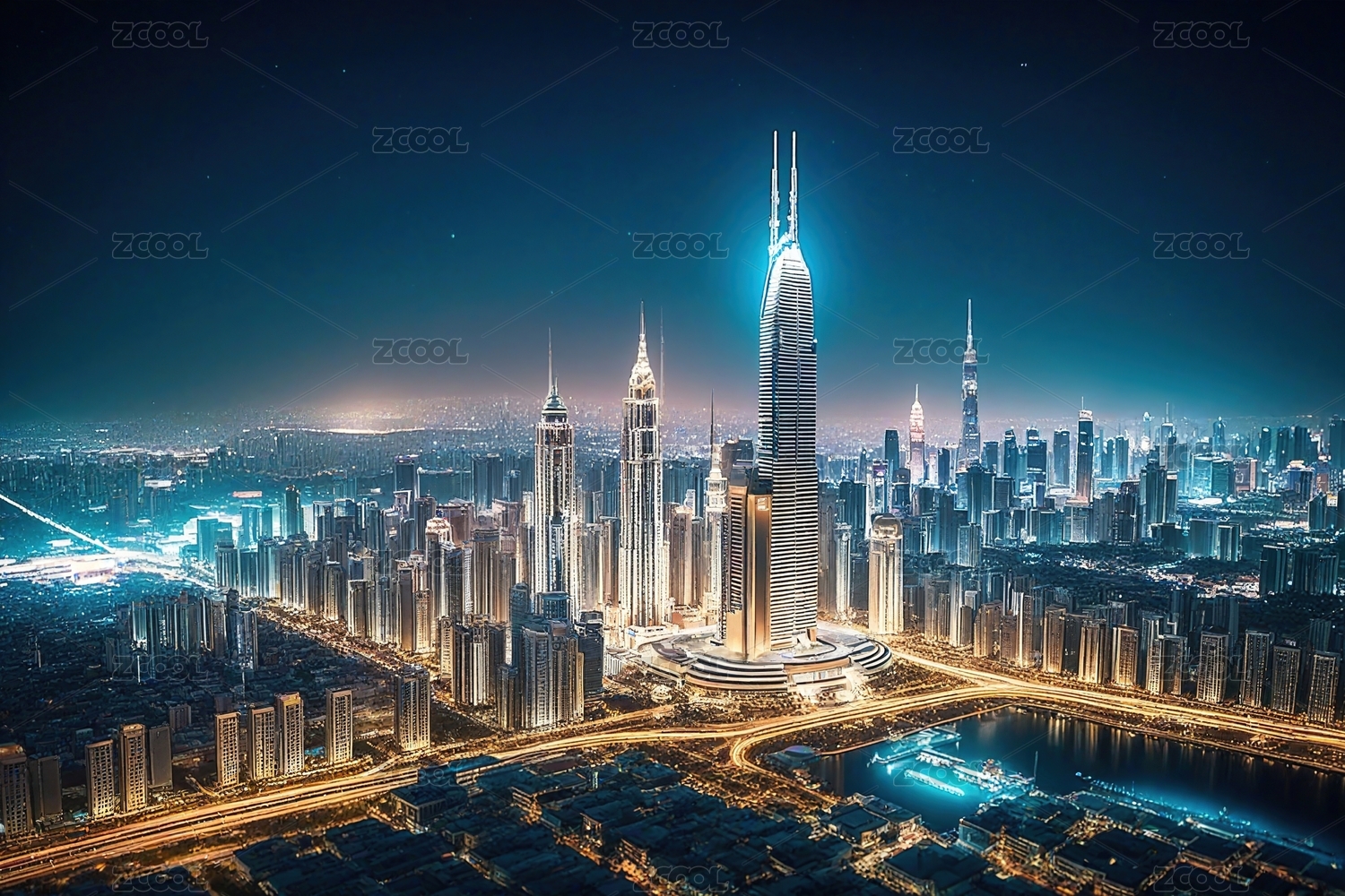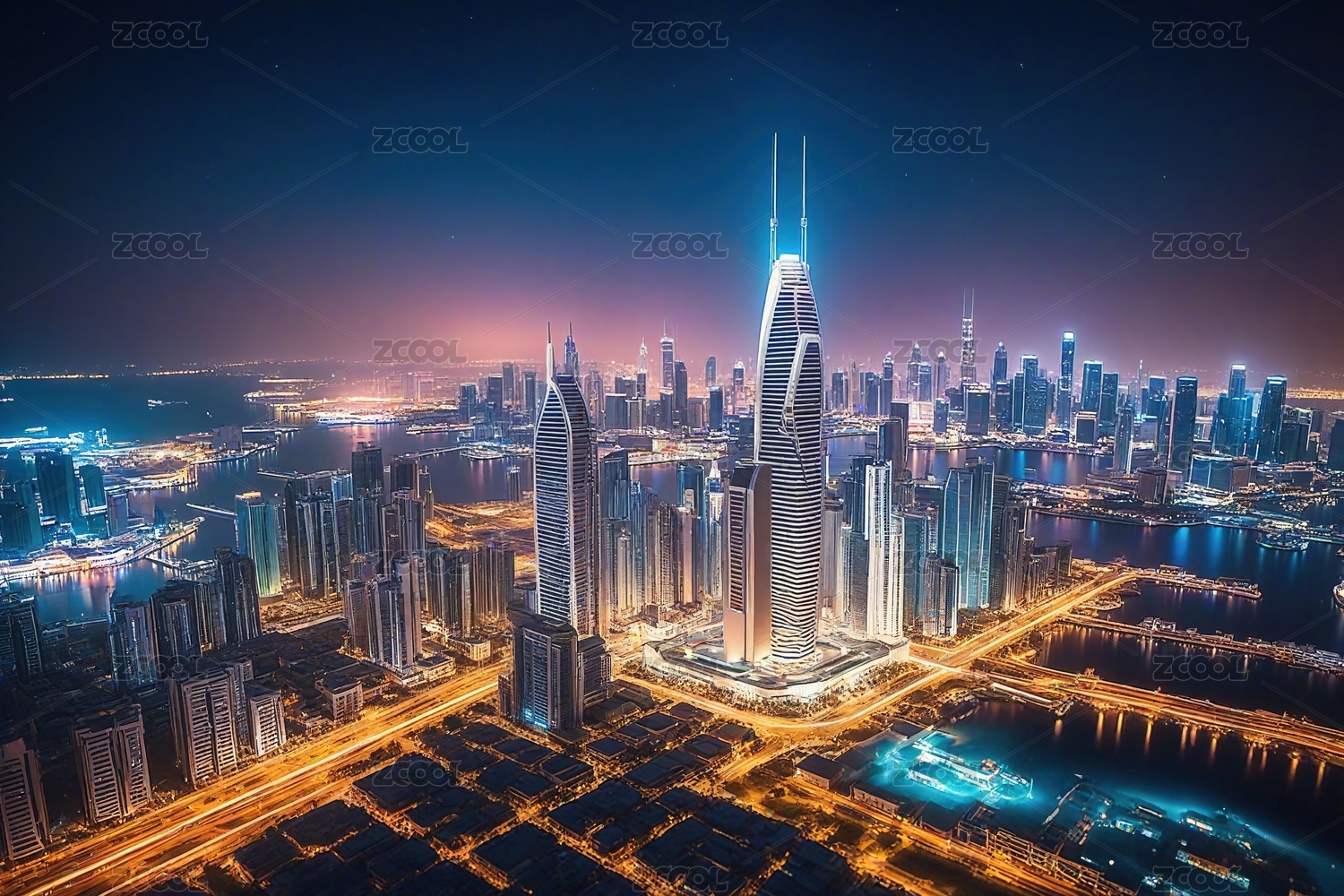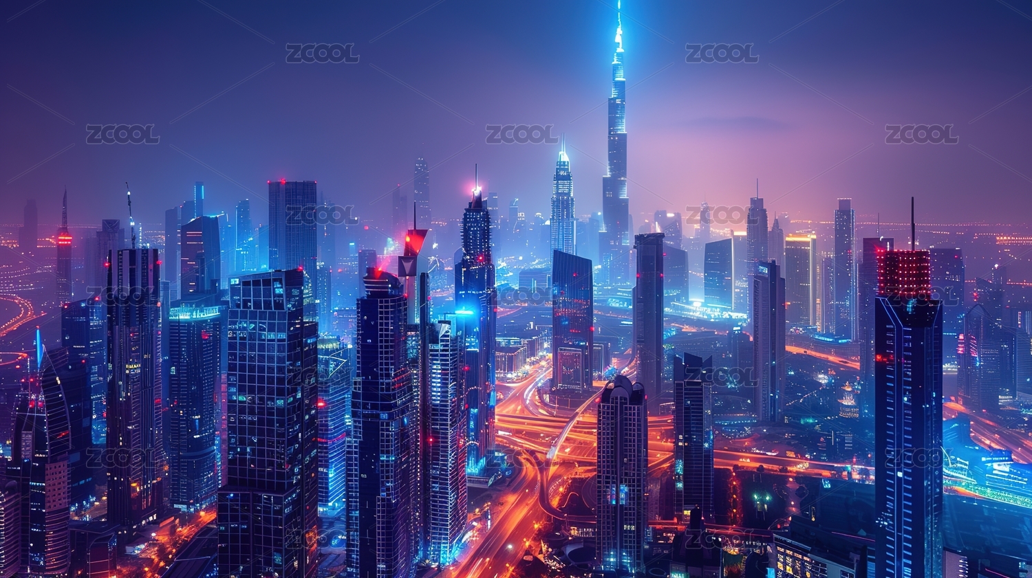 迪拜,夜晚,城市,建筑,摩天大楼,灯光,道路,交通,繁华,现代