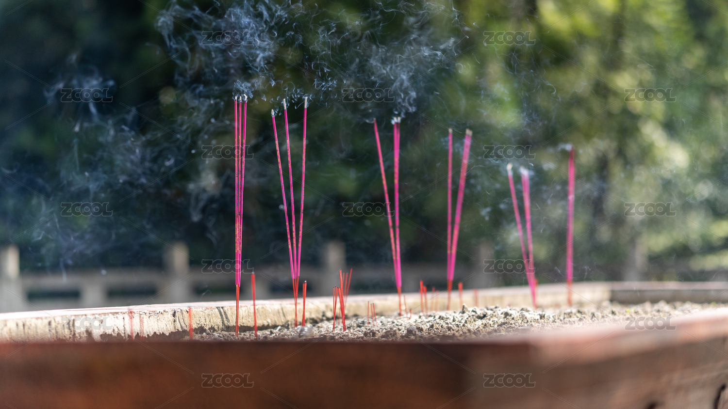 寺庙的烧香飘起缕缕白烟,佛家宗教信仰