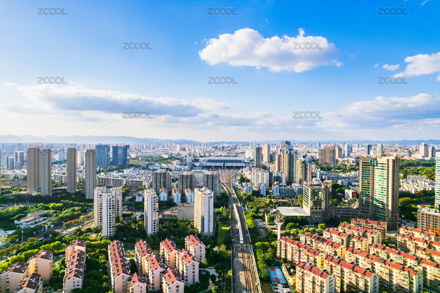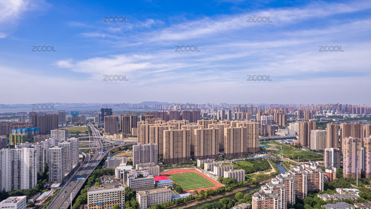 江苏无锡市城市地标建筑市中心蓝天白云风光