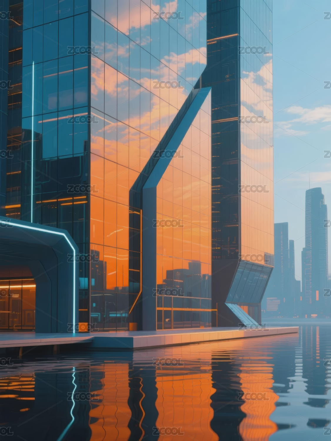 城市,河流,大桥,建筑,高楼,夕阳,反射,云彩,天空,水面