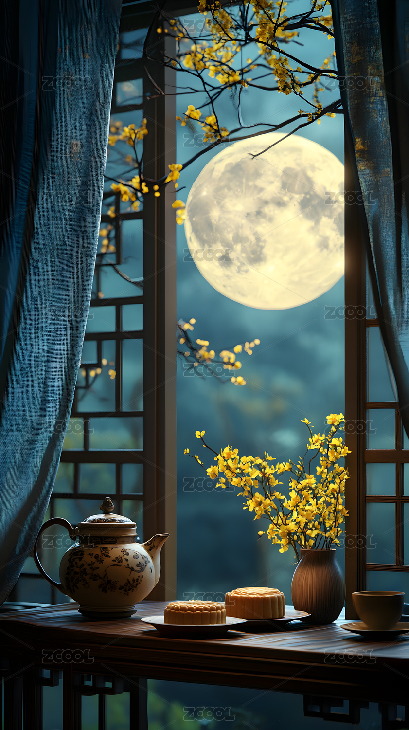 中秋节,月亮,月饼,中式元素,AIGC202403