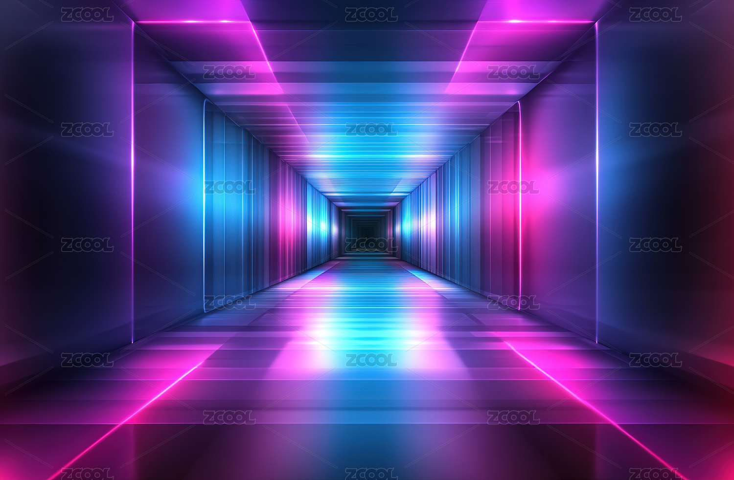 数码科技紫色霓虹灯抽象未来派隧道海报背景
