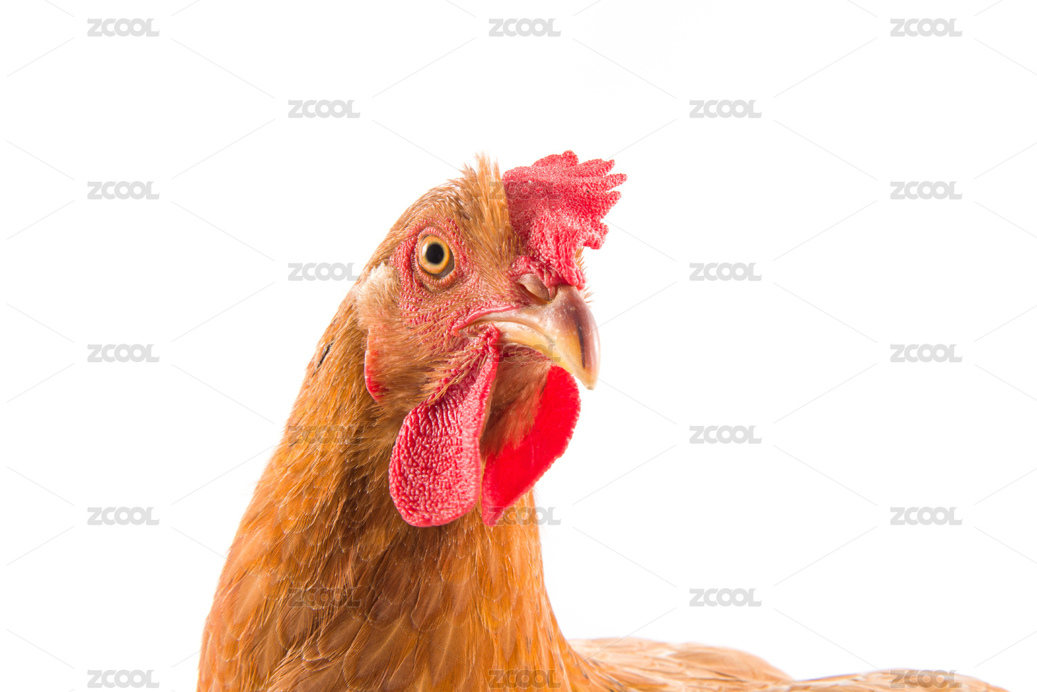 白色背景上的鸡头特写