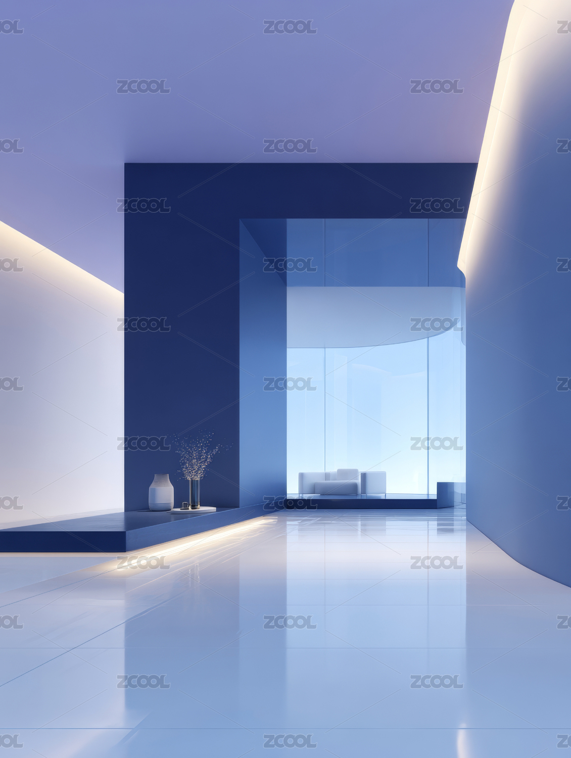 现代蓝色调宽敞室内空间