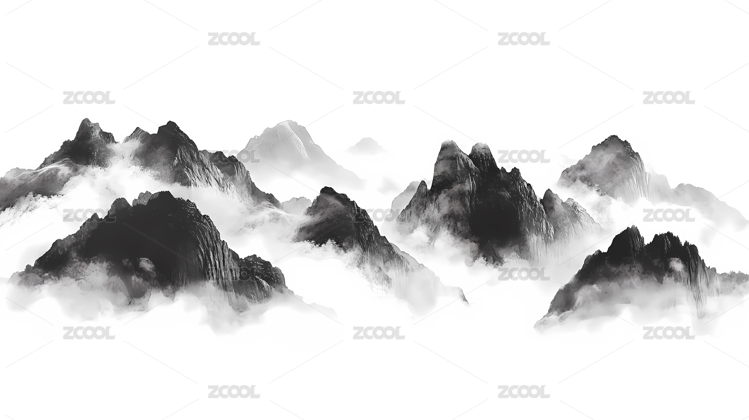 水墨云海山景图