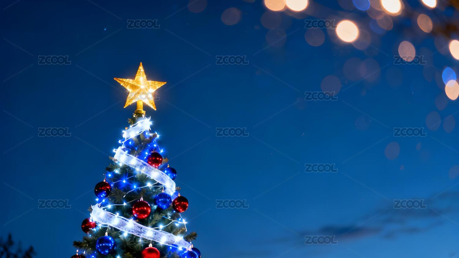 夜晚蓝天下的圣诞树