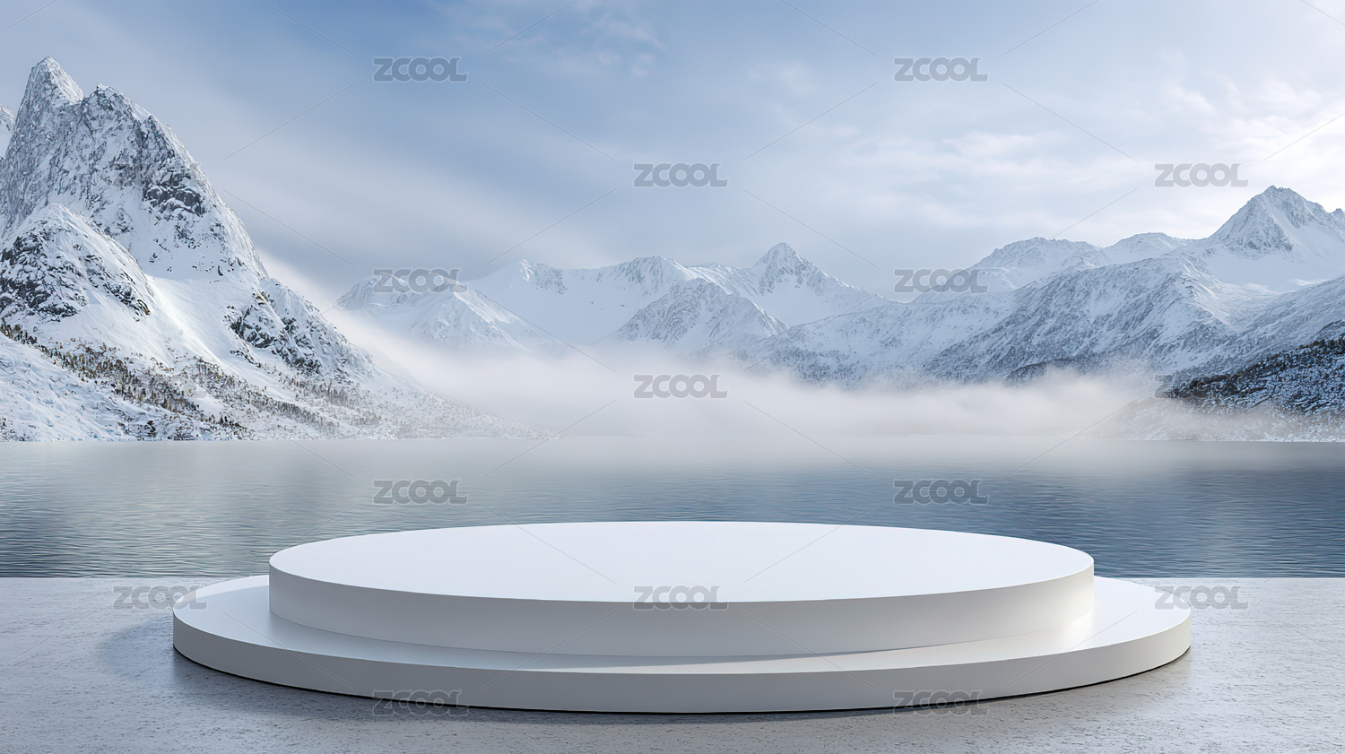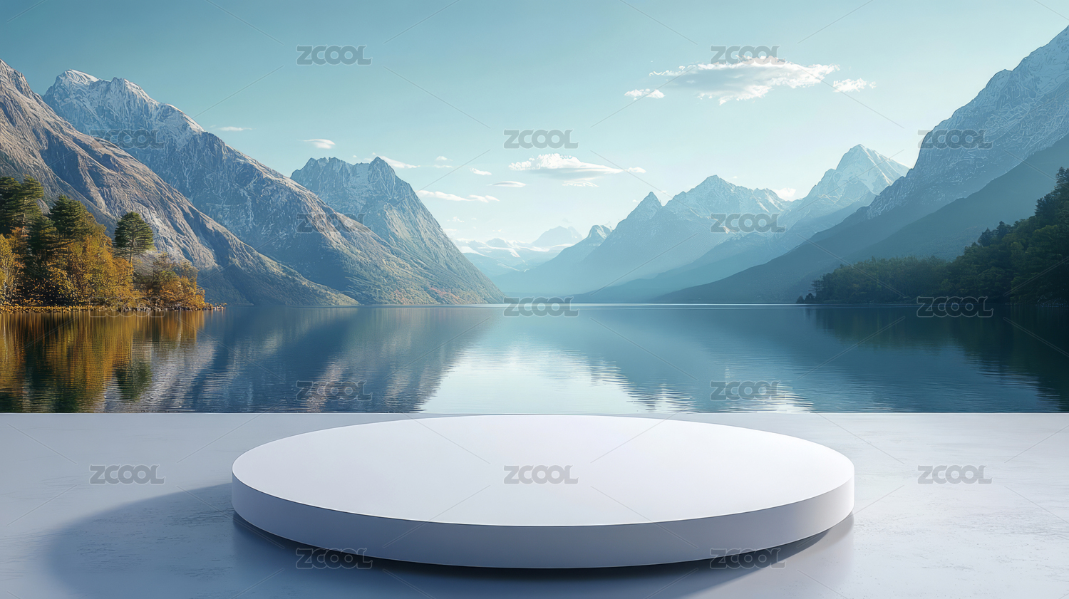 3D渲染自然山水产品展台背景