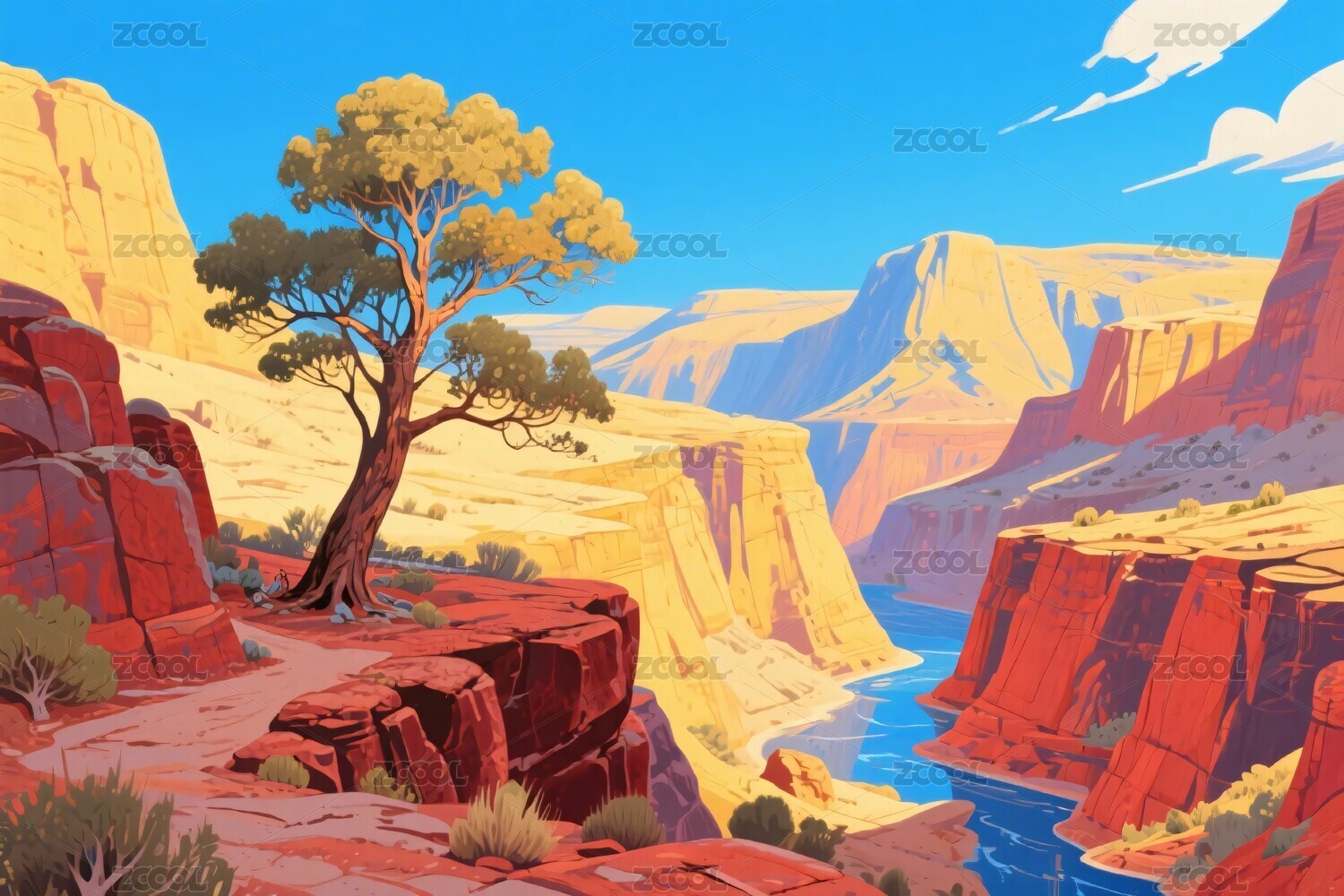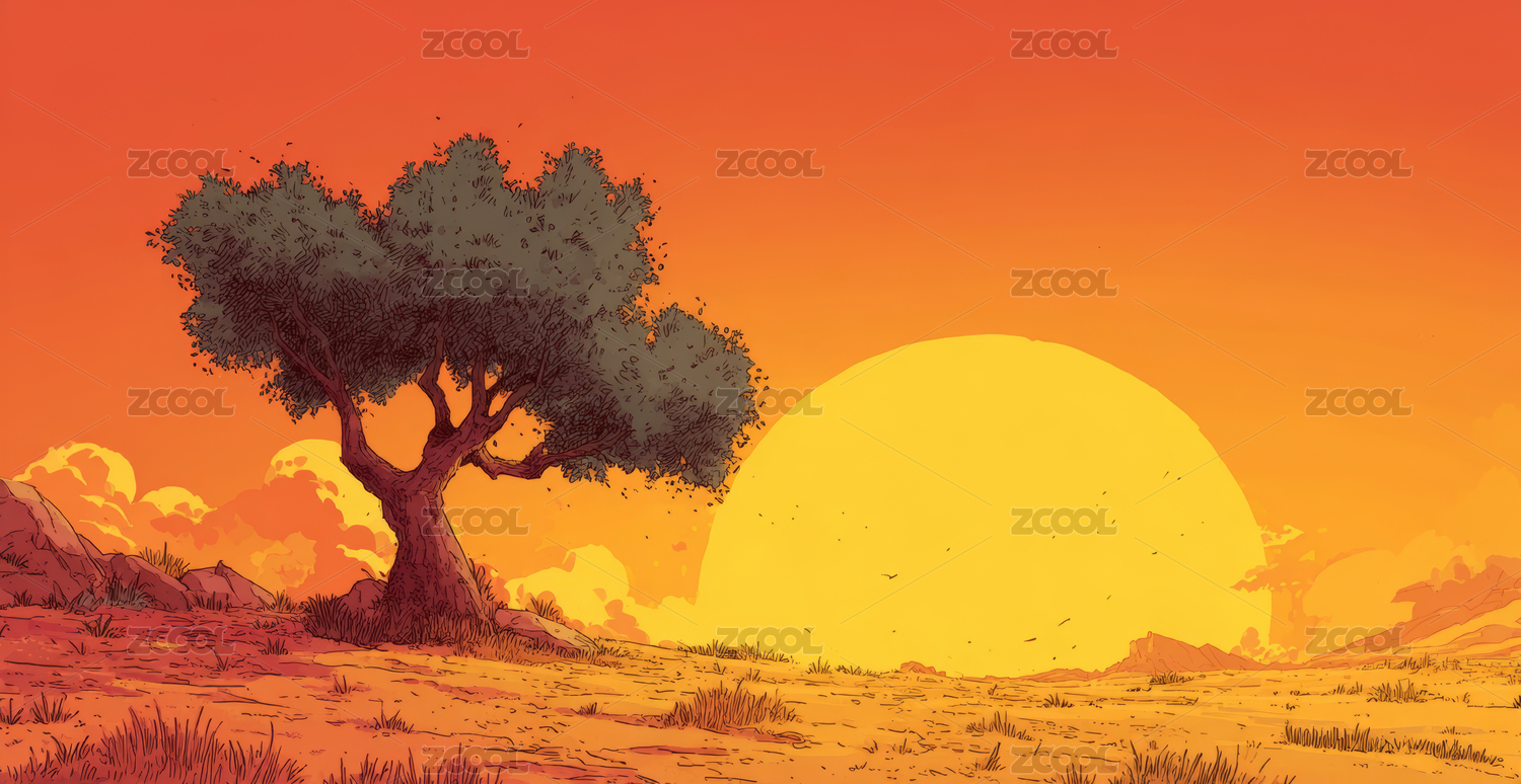 立秋节气户外旅行自然风景处暑卡通唯美插画