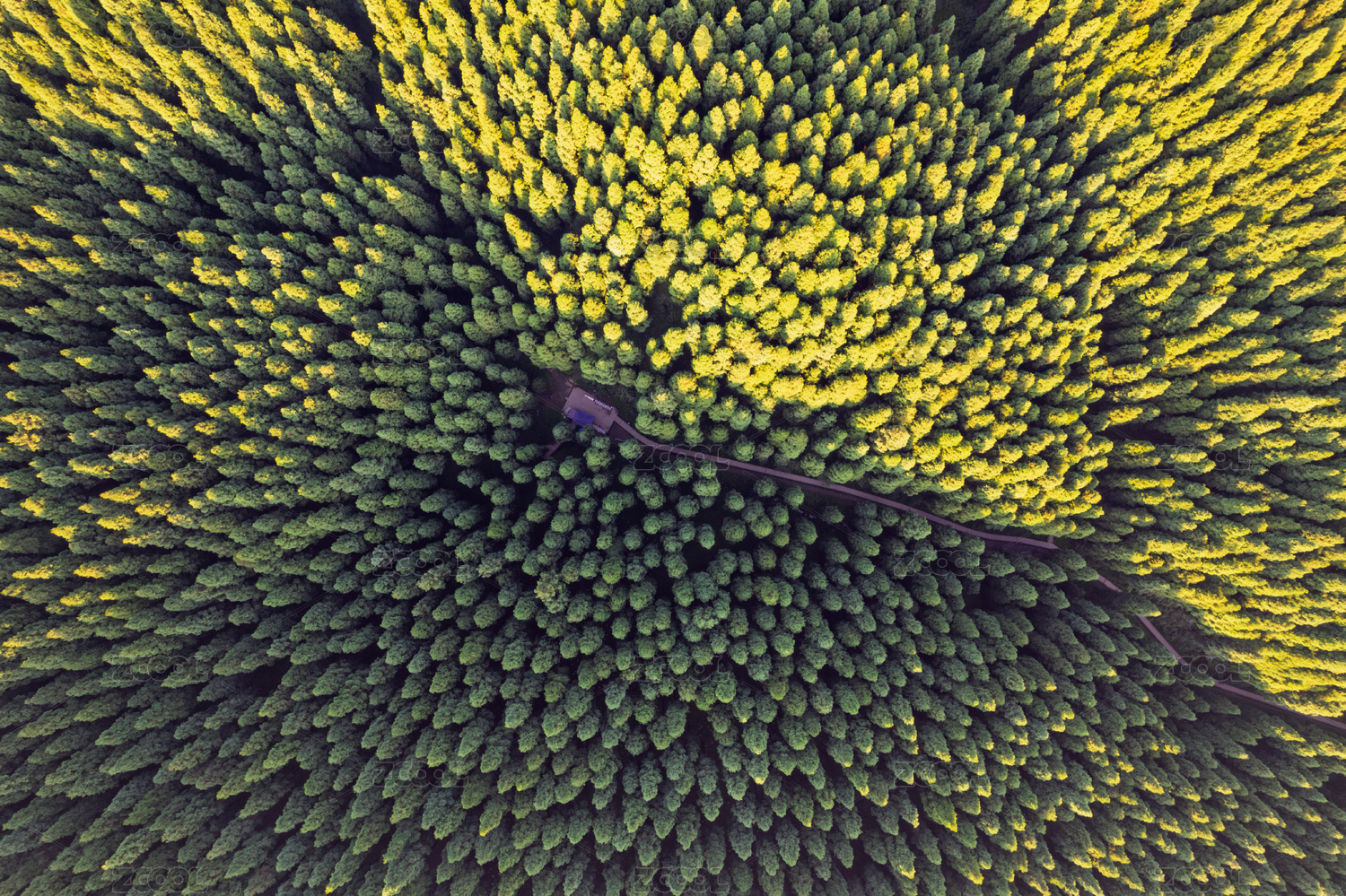 森林小路白昼航拍