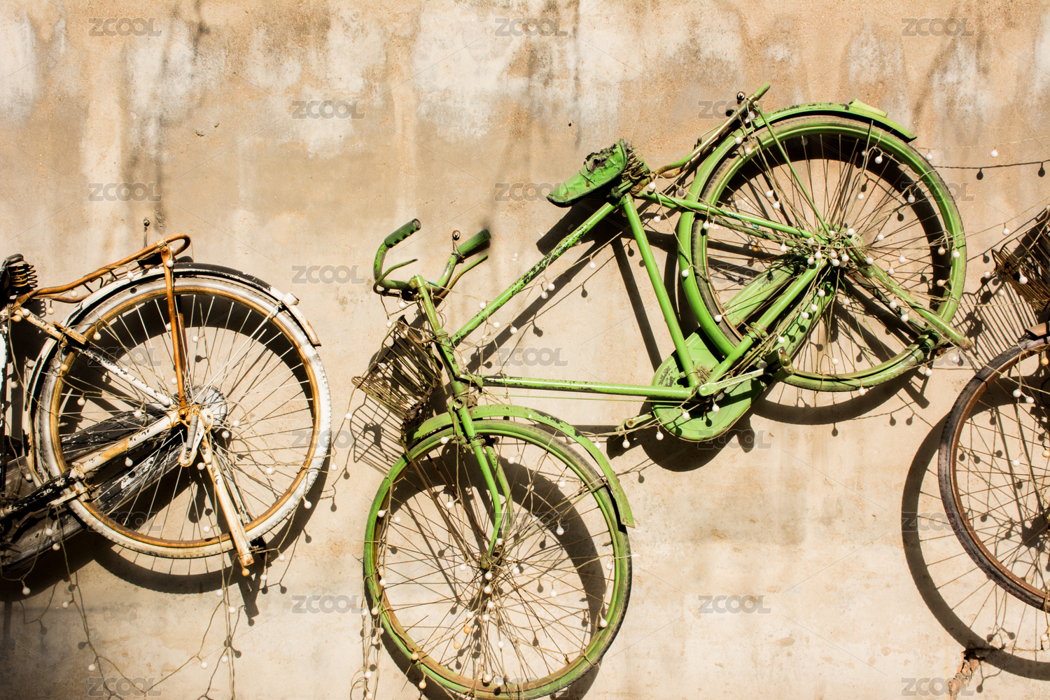 停靠在墙壁边上的老式自行车