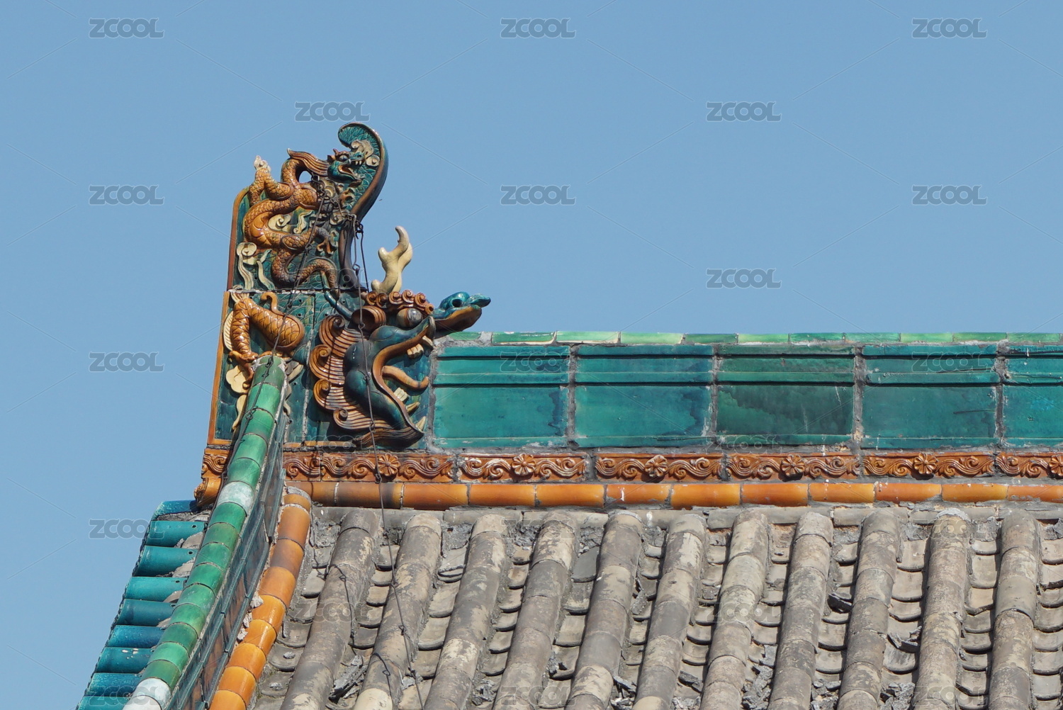 山西临汾市洪洞县广胜寺精美的屋脊鸱吻特写