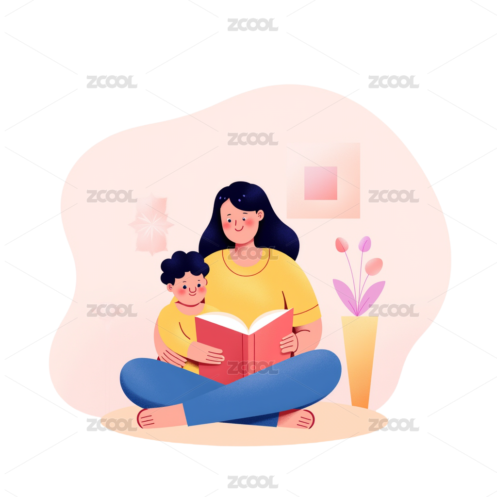 开学季亲子教育阅读世界读书日亲情陪伴插画