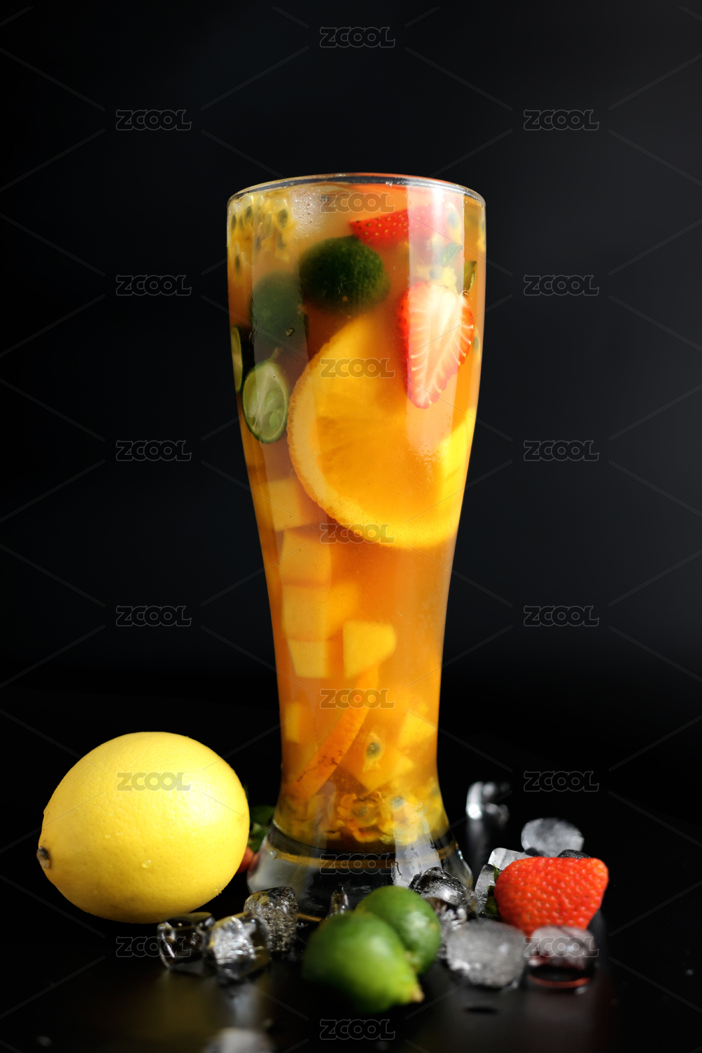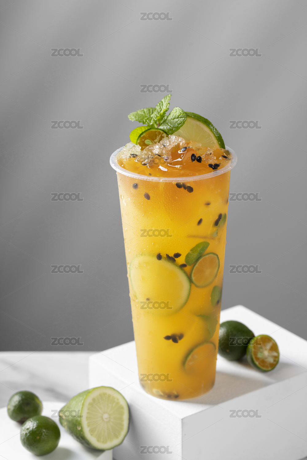 杯子里的冷饮饮料百香果柠檬饮品