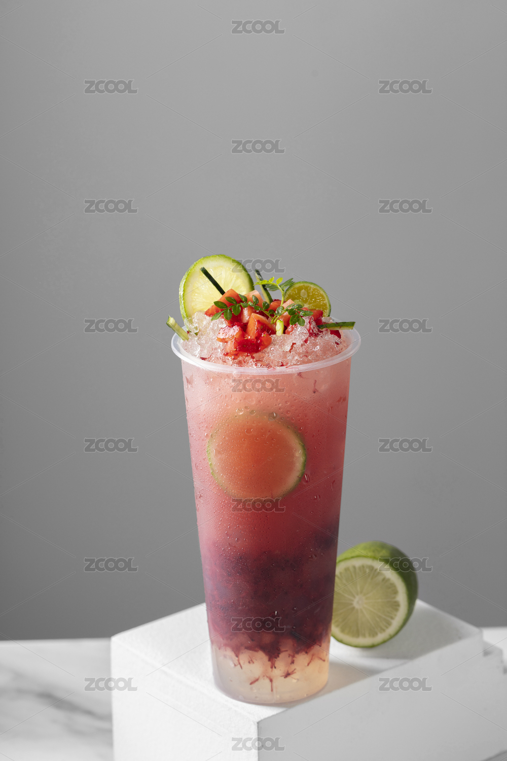 杯子里的冷饮饮料红色饮品