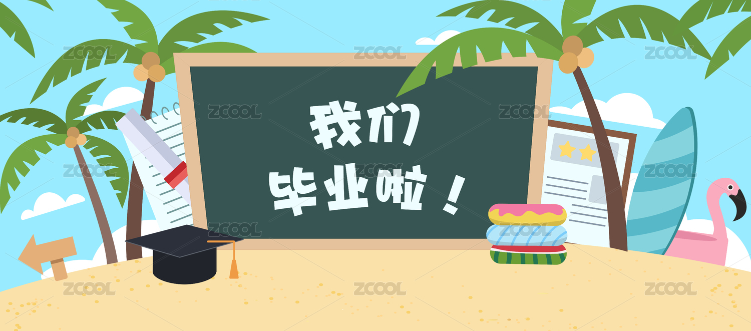 毕业啦沙滩上的黑板博士帽冲浪板椰树