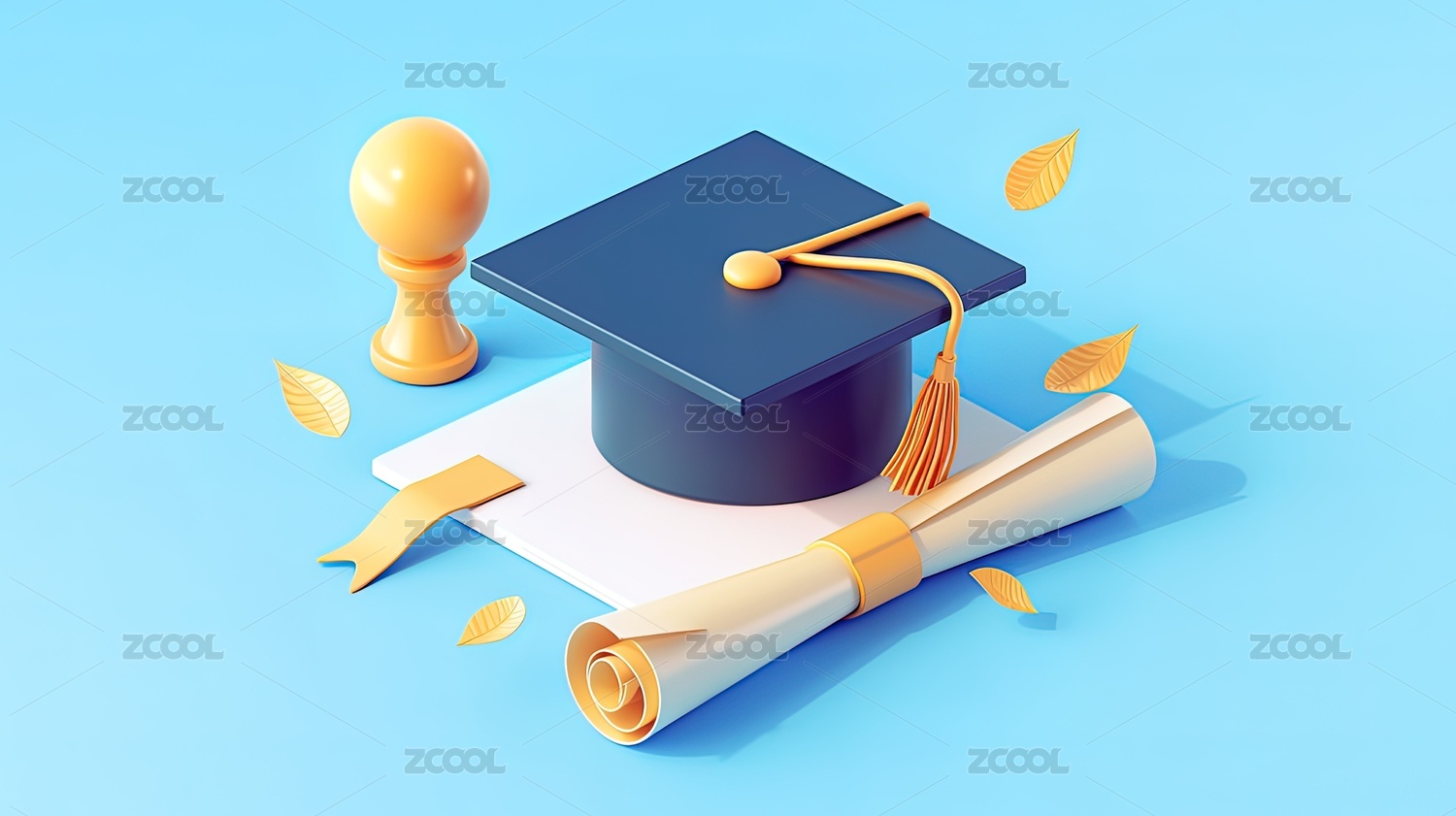 毕业典礼的毕业帽背景和庆祝学位的概念,3