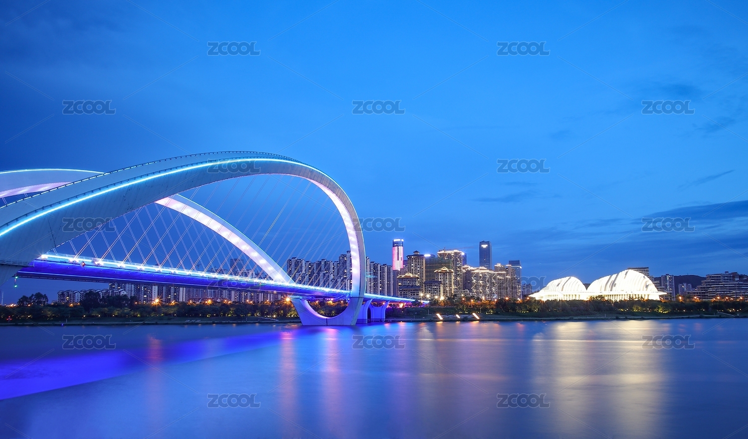 广州番禺新光大桥夜景灯光星芒江边倒影