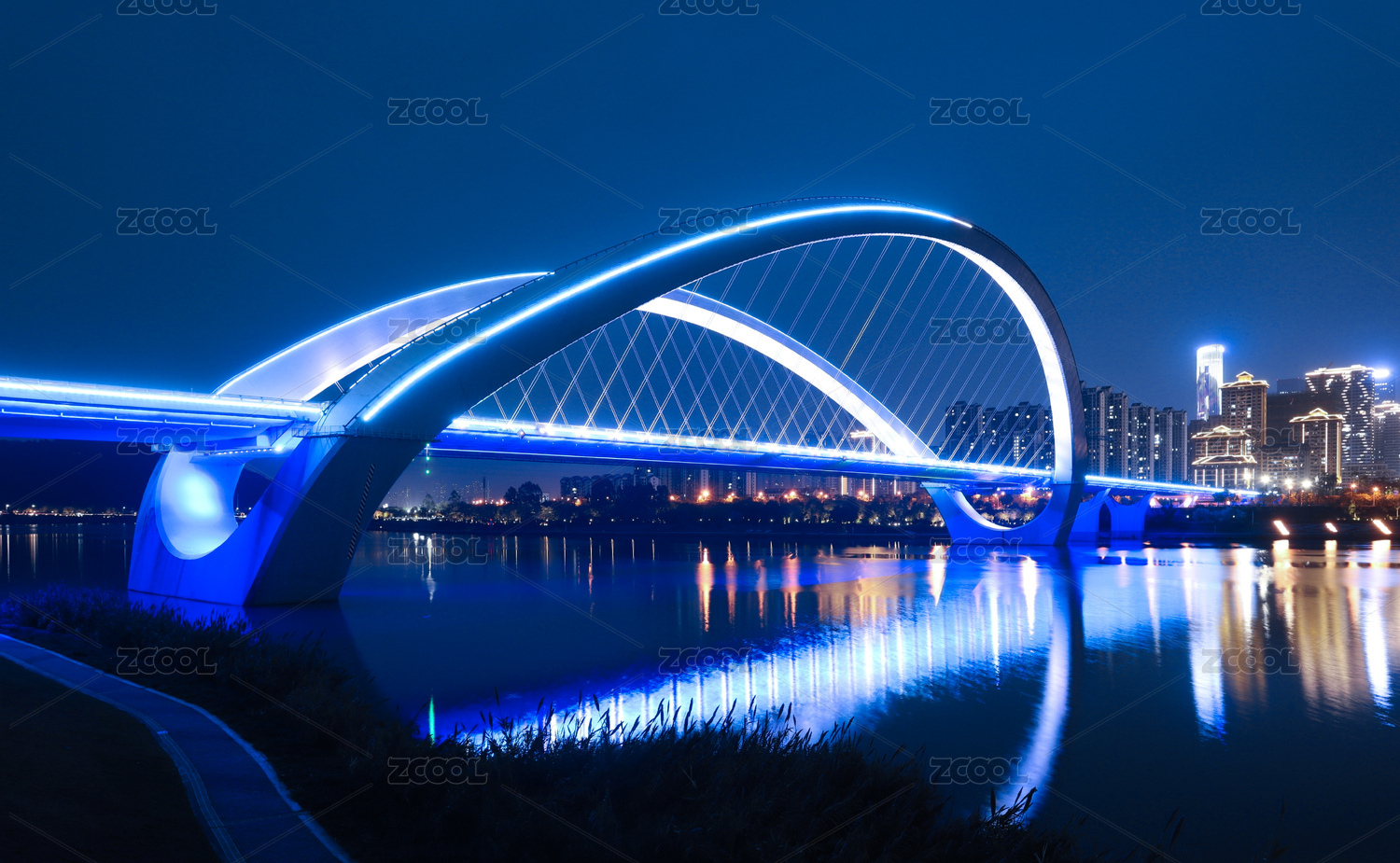 中国四川成都高新区造型奇特的五岔子大桥夜景