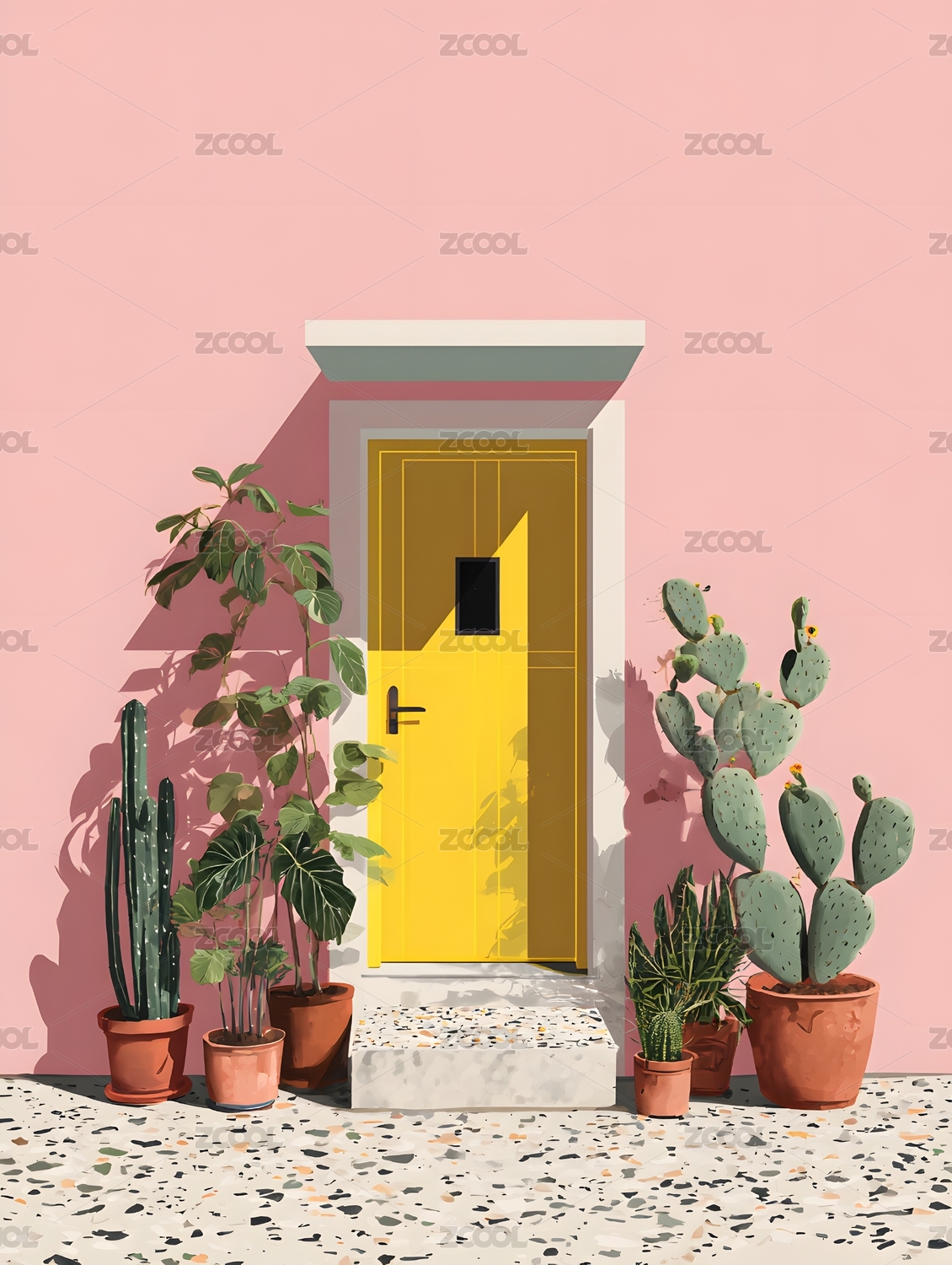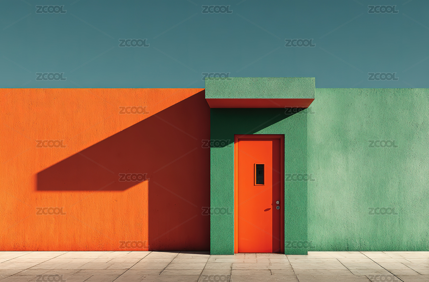 现代,建筑,蓝色,场景,阳光,简约,多彩,图案,乡村,景观