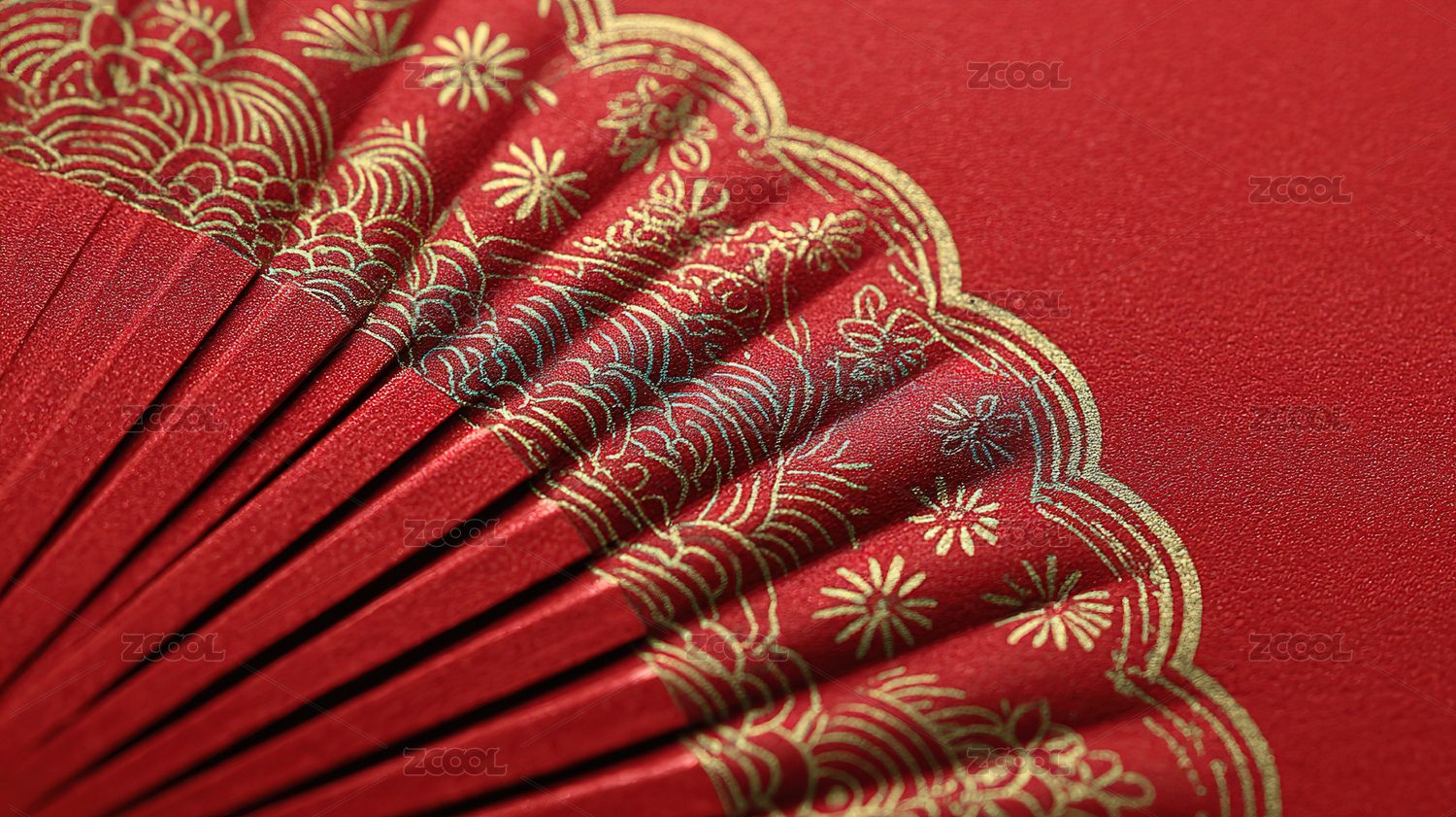 红金色东方扇形图案纹理海报背景