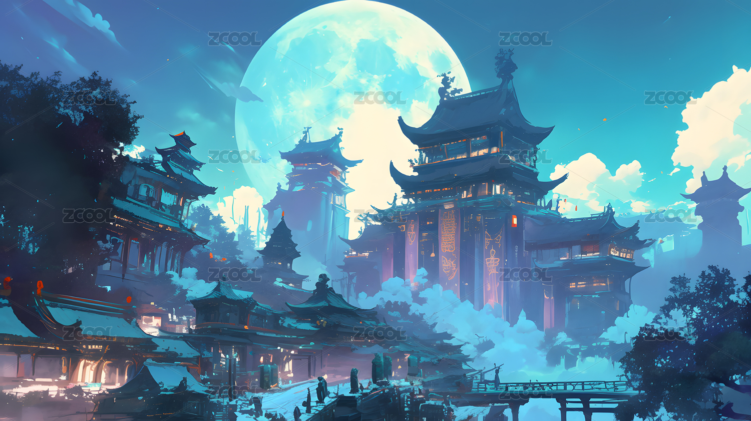 建筑,闪光,华丽,梦幻,沙,风景,园林,植物,亭子,屋顶
