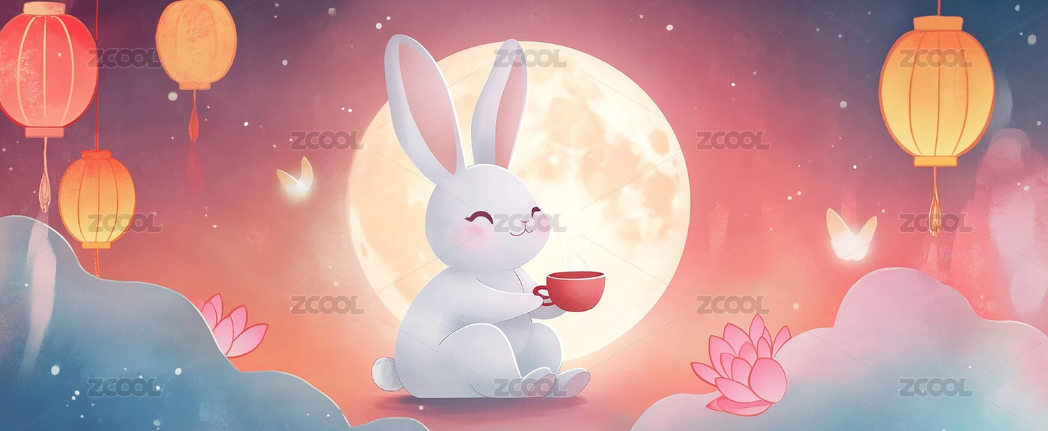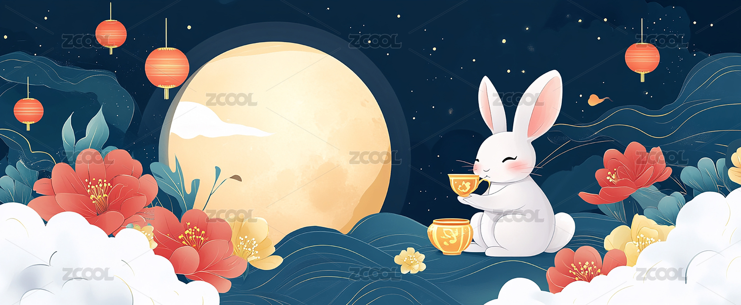 中秋,月兔,中秋节,兔子,月亮,素材,背景,灯笼,白云,月球