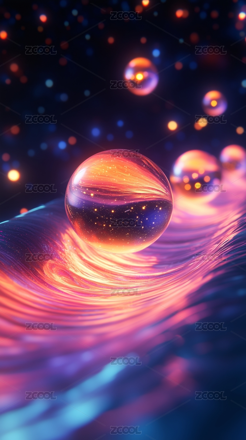 奇幻光球与能量波纹抽象背景