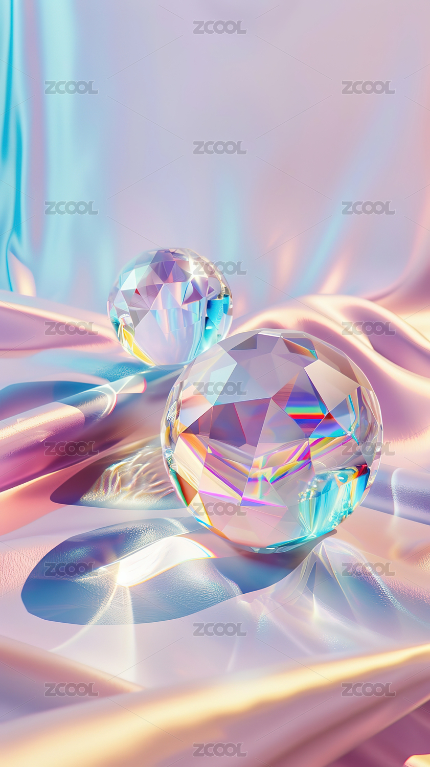 粉色丝绸织品上钻石宝石饰品3D立体插画
