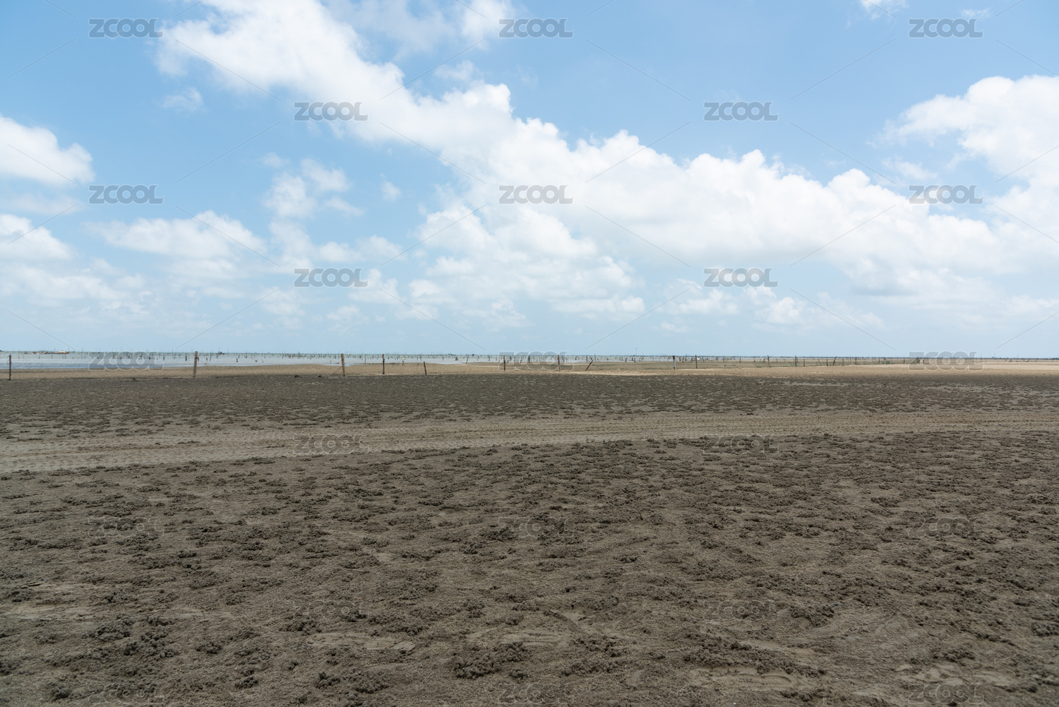 浙江省海宁市盐官度假区-晴空下的河滩风景