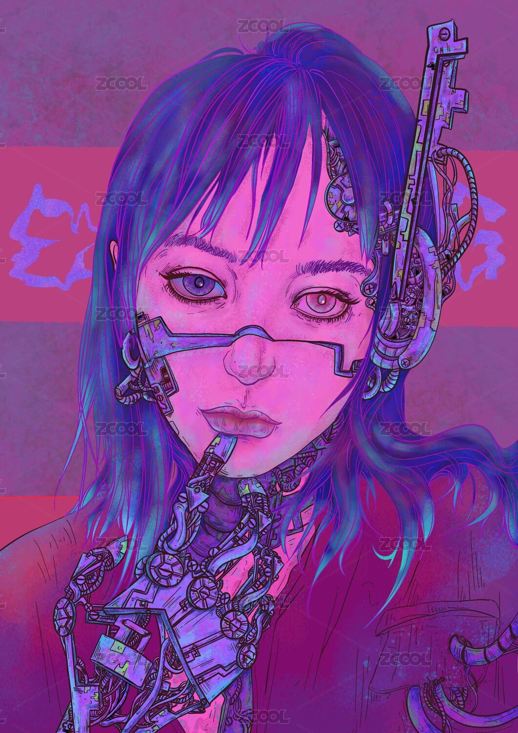 苗族少数民族银饰蒸汽朋克少女潮流插画