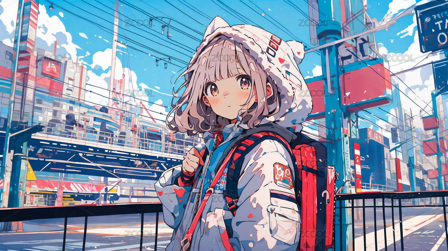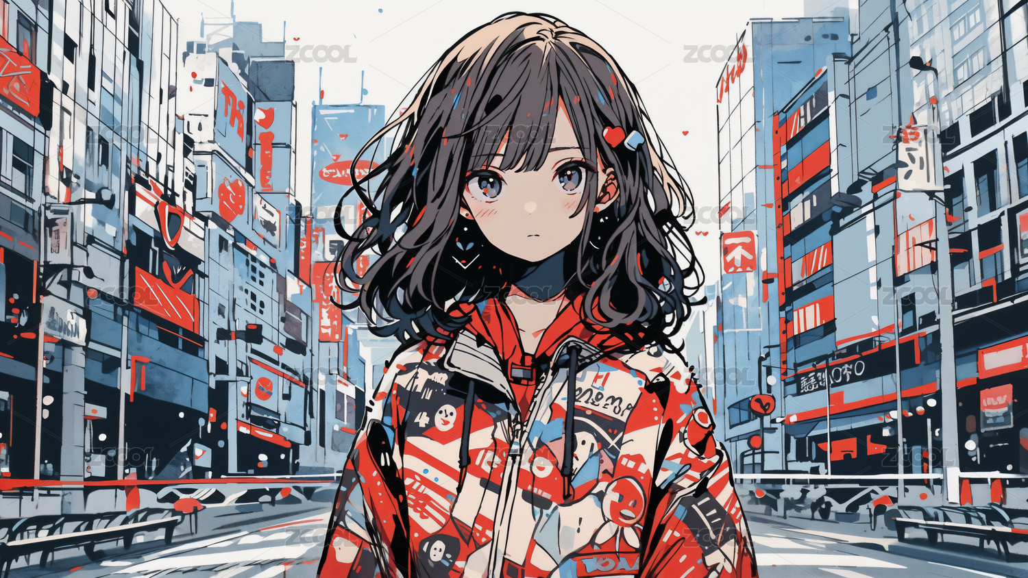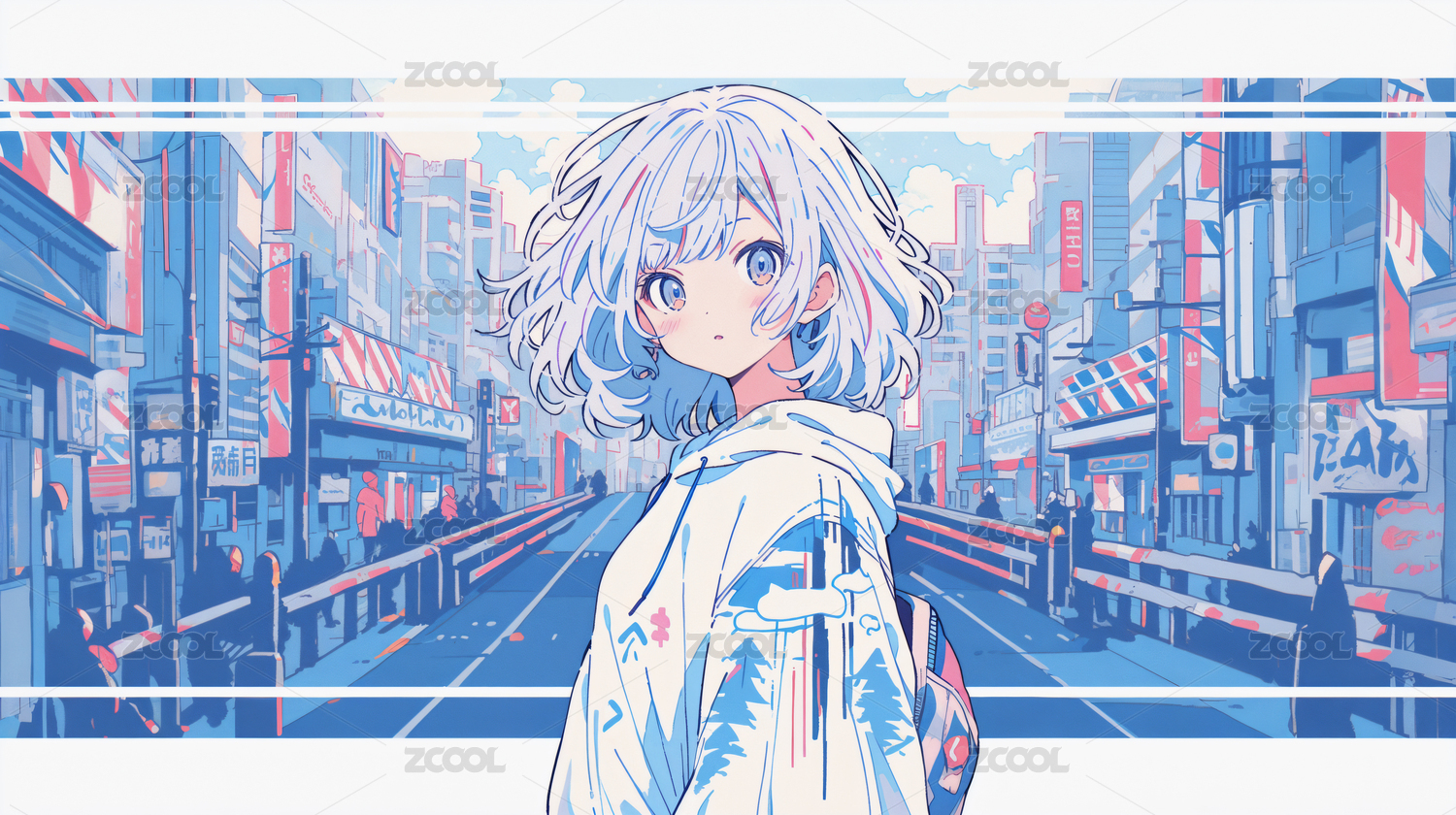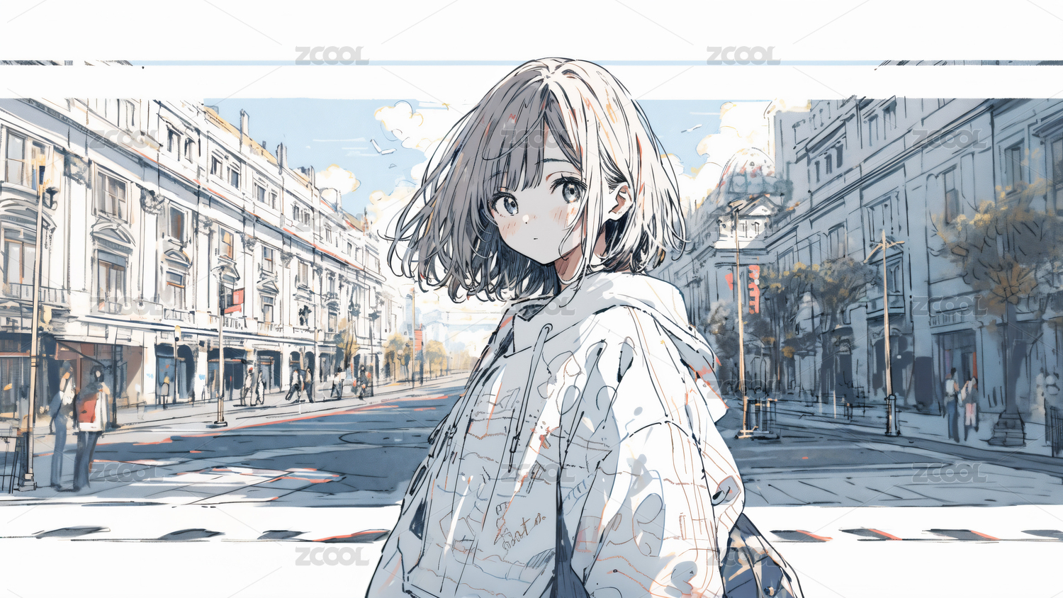 街道,女性,人像,女孩,可爱,二次元,城市,人群,楼房