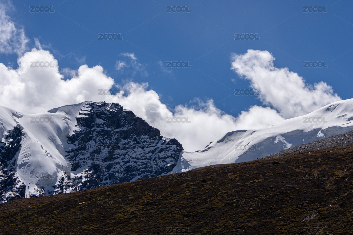 中国西藏的雪山与蓝天白云自然风光