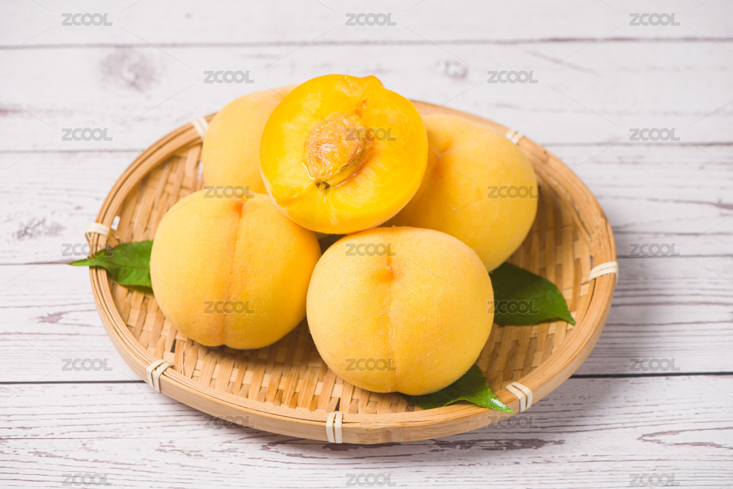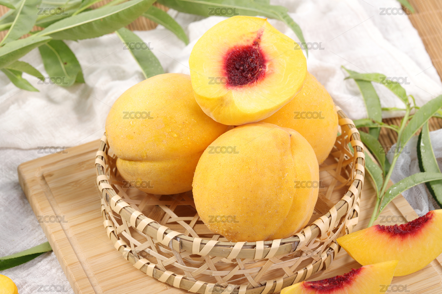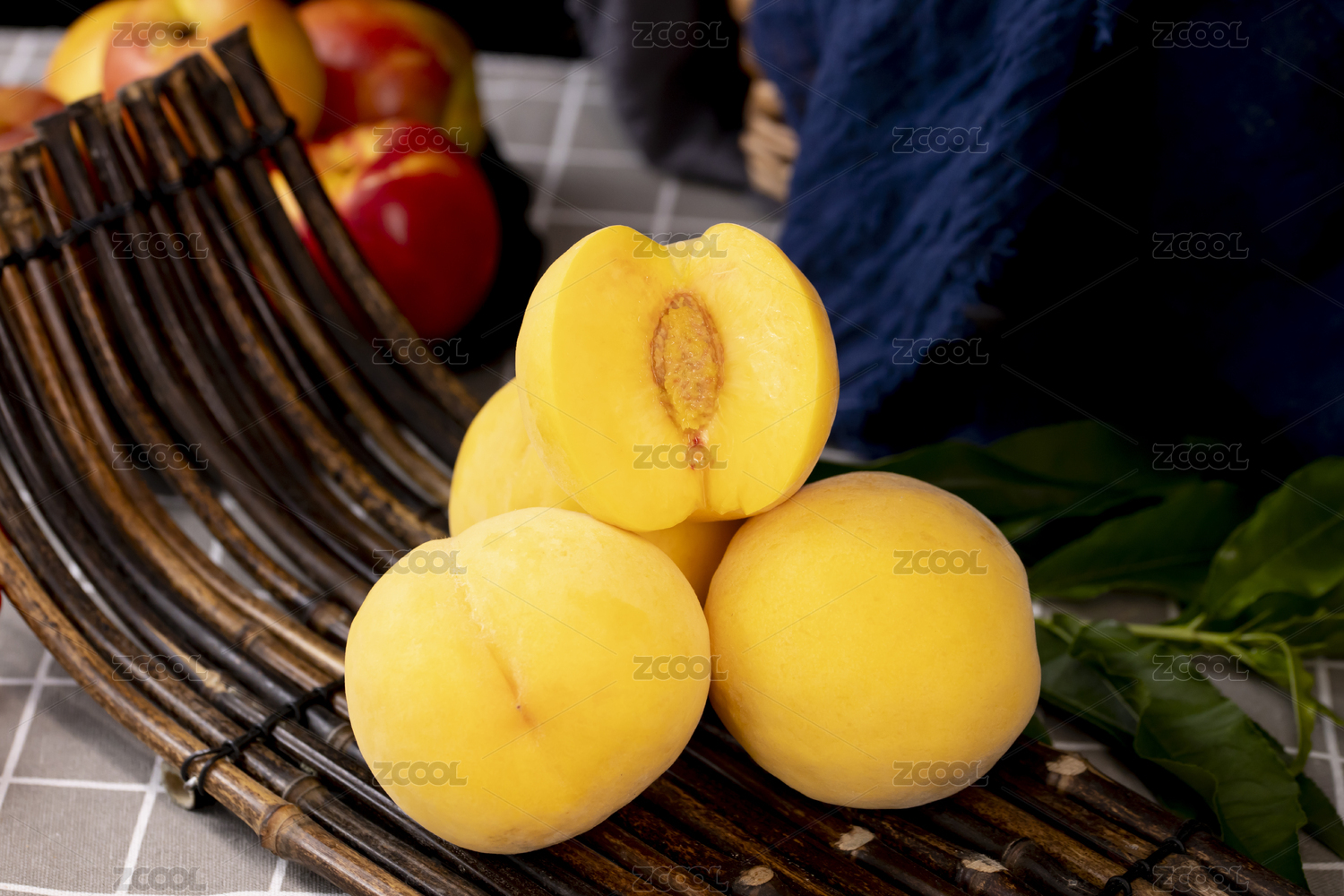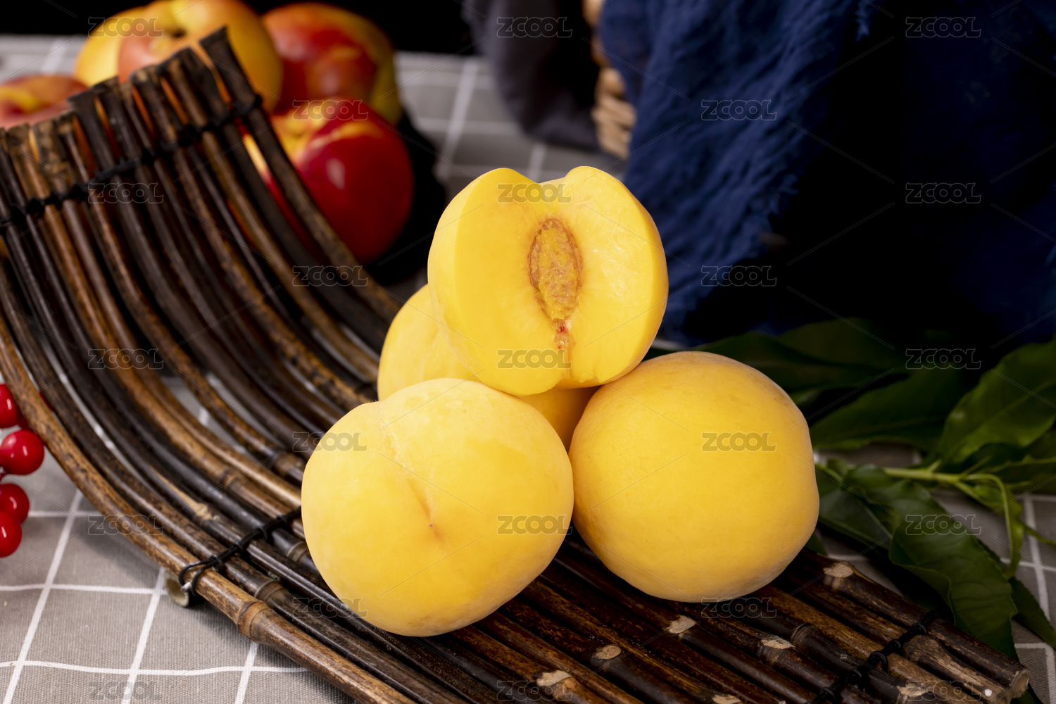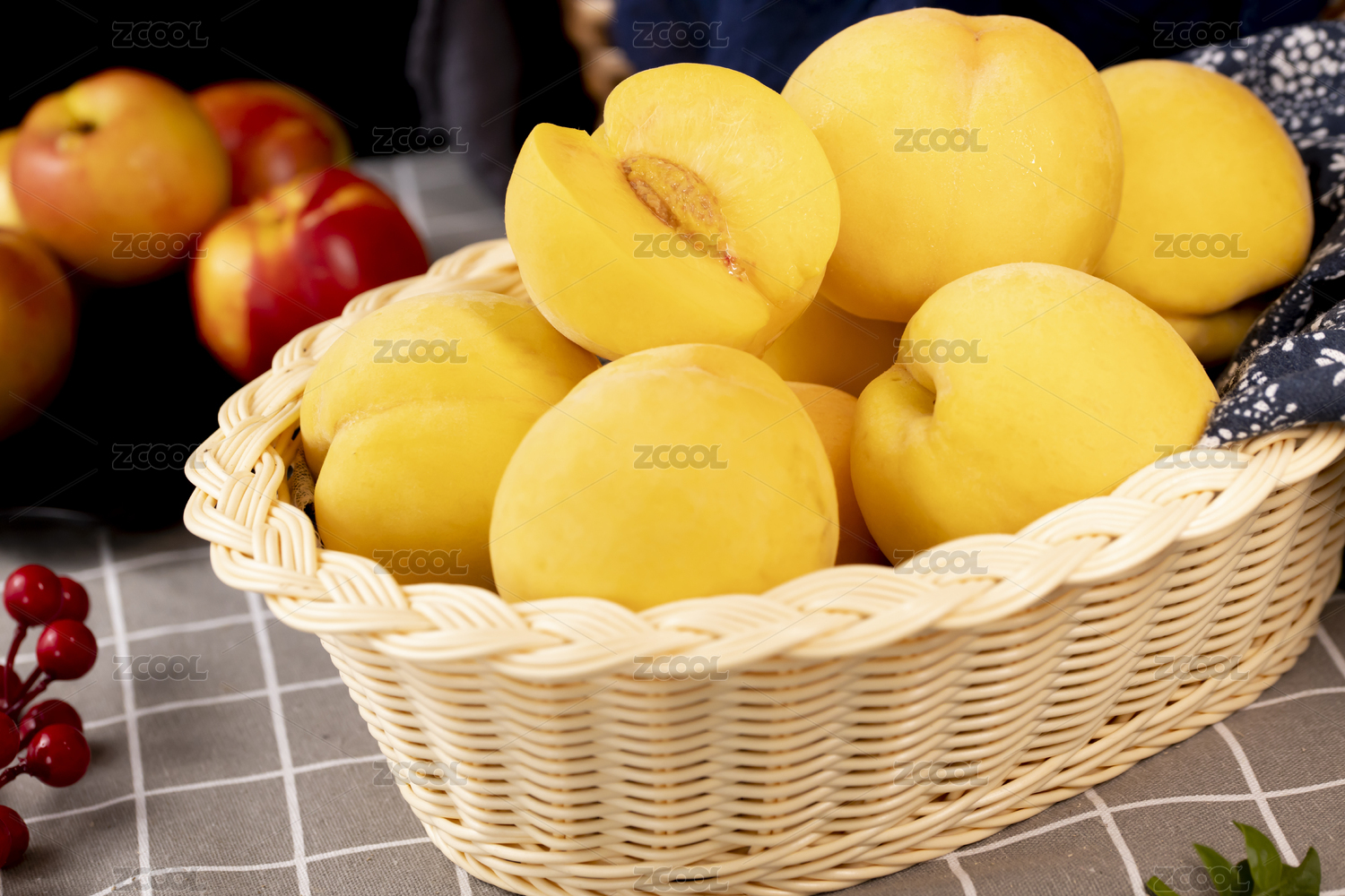 桌上的新鲜黄桃