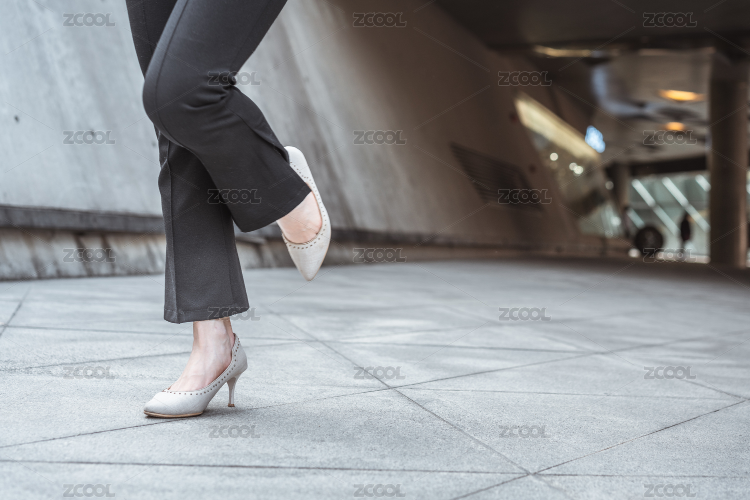 亚洲办公室女郎走在在阳光好日子楼梯,手持智能手机,并准备上去了公司办公室外。