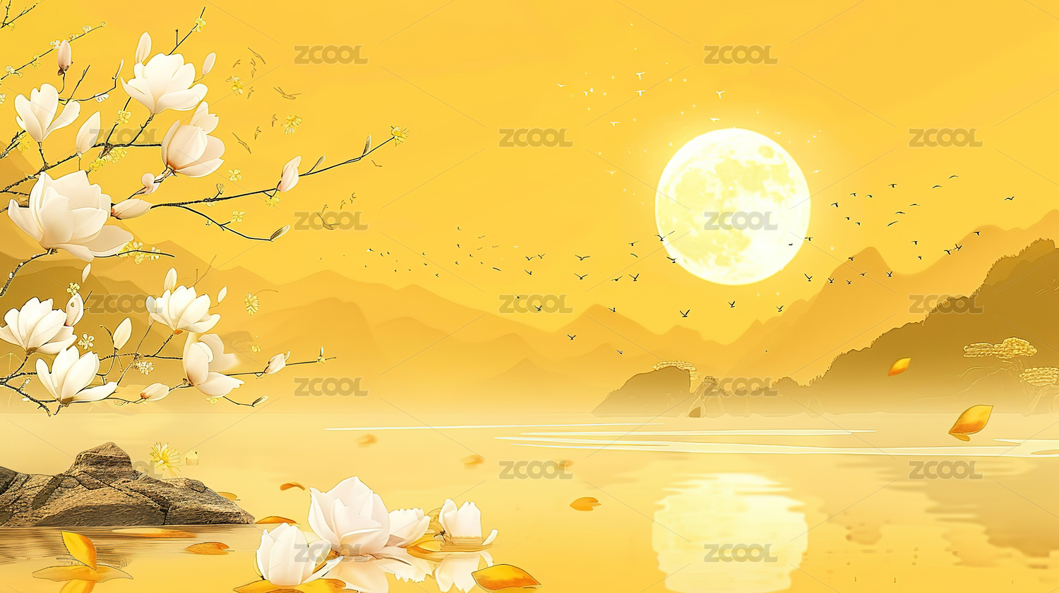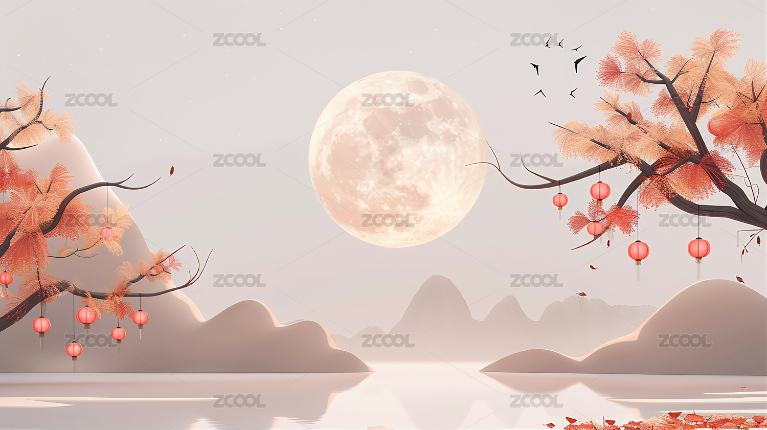 中秋节,月亮,月饼,桂花,水,背景,山水,中国风,素雅,白色