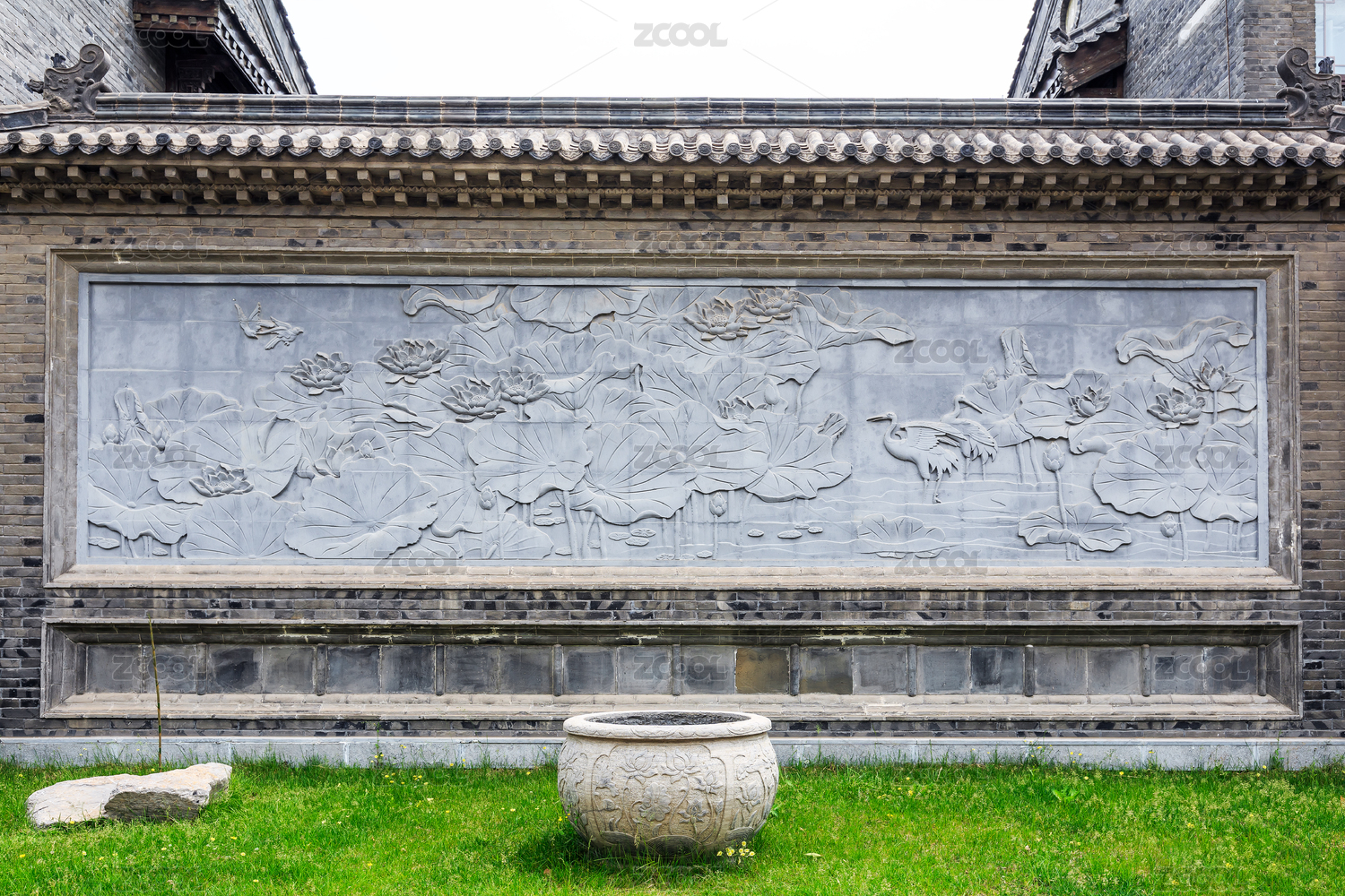 中式荷花砖雕影壁墙,山东安丘青龙小镇