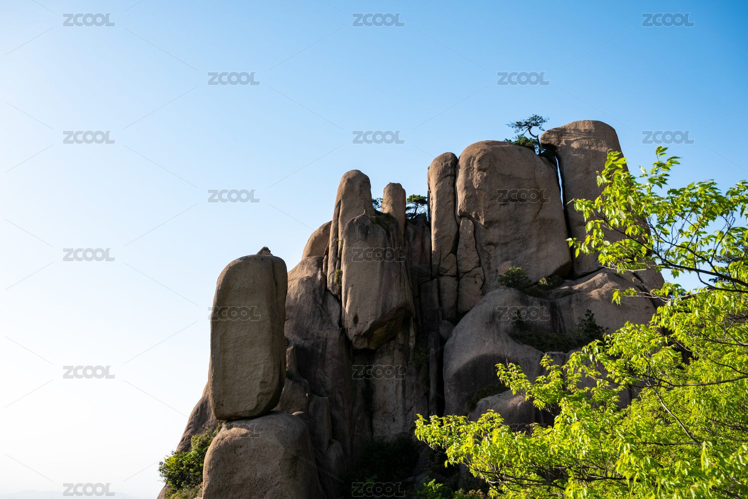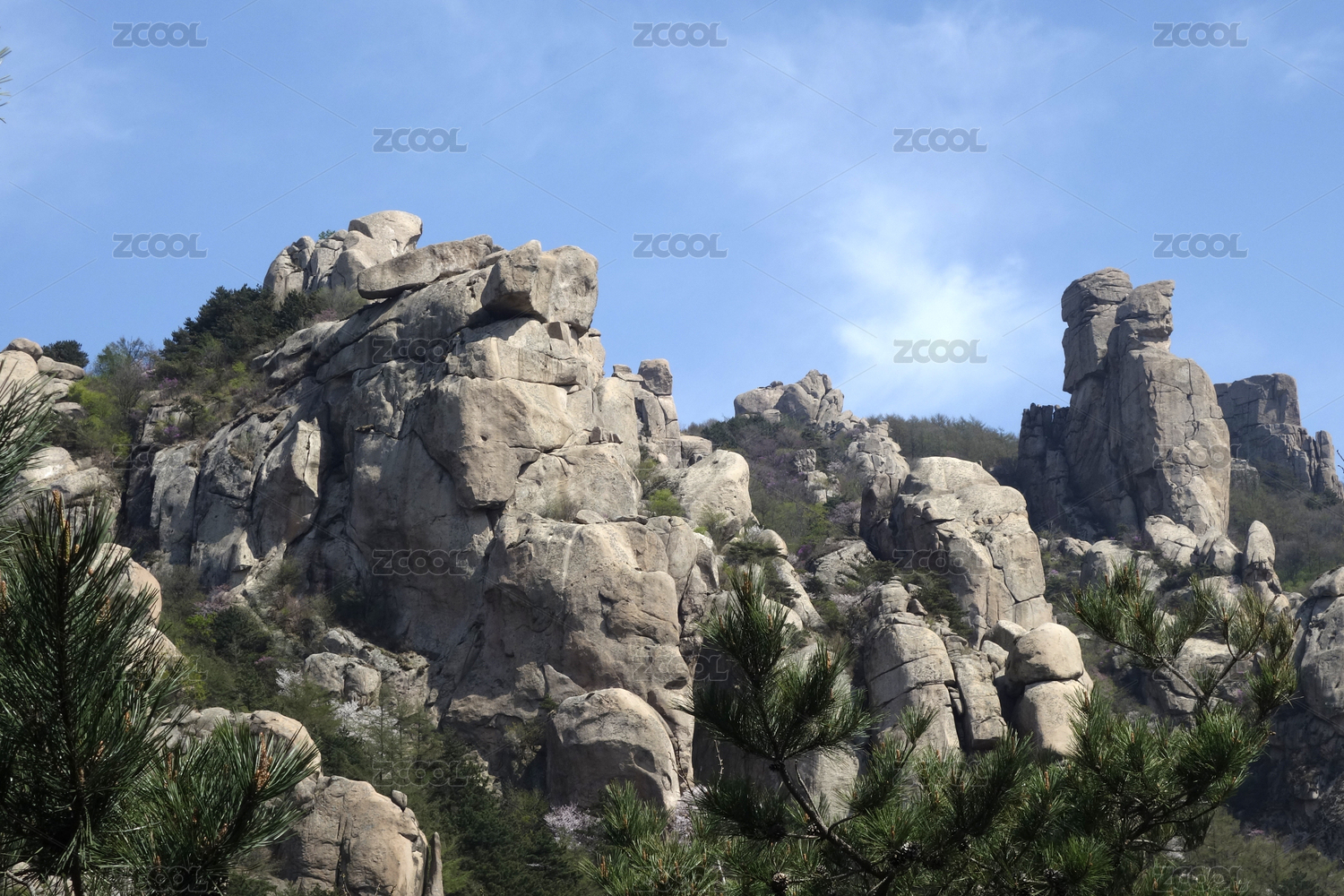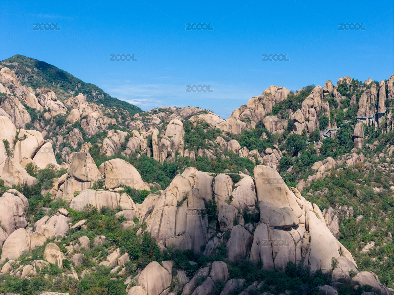 蓝天下的崂山山峰,中国山东省青岛市崂山巨峰风景区