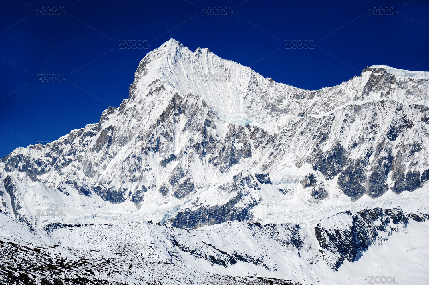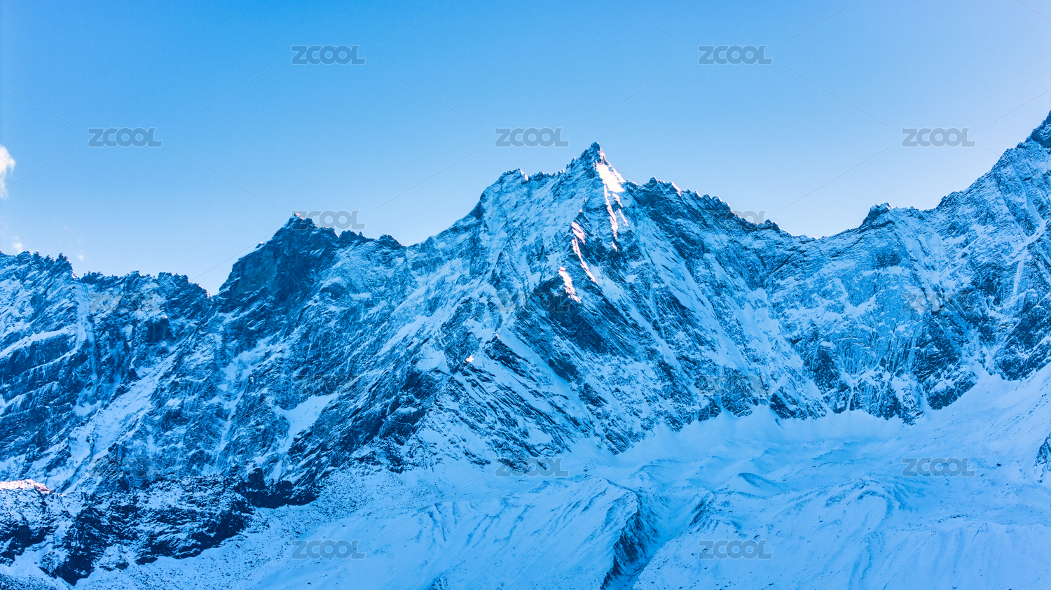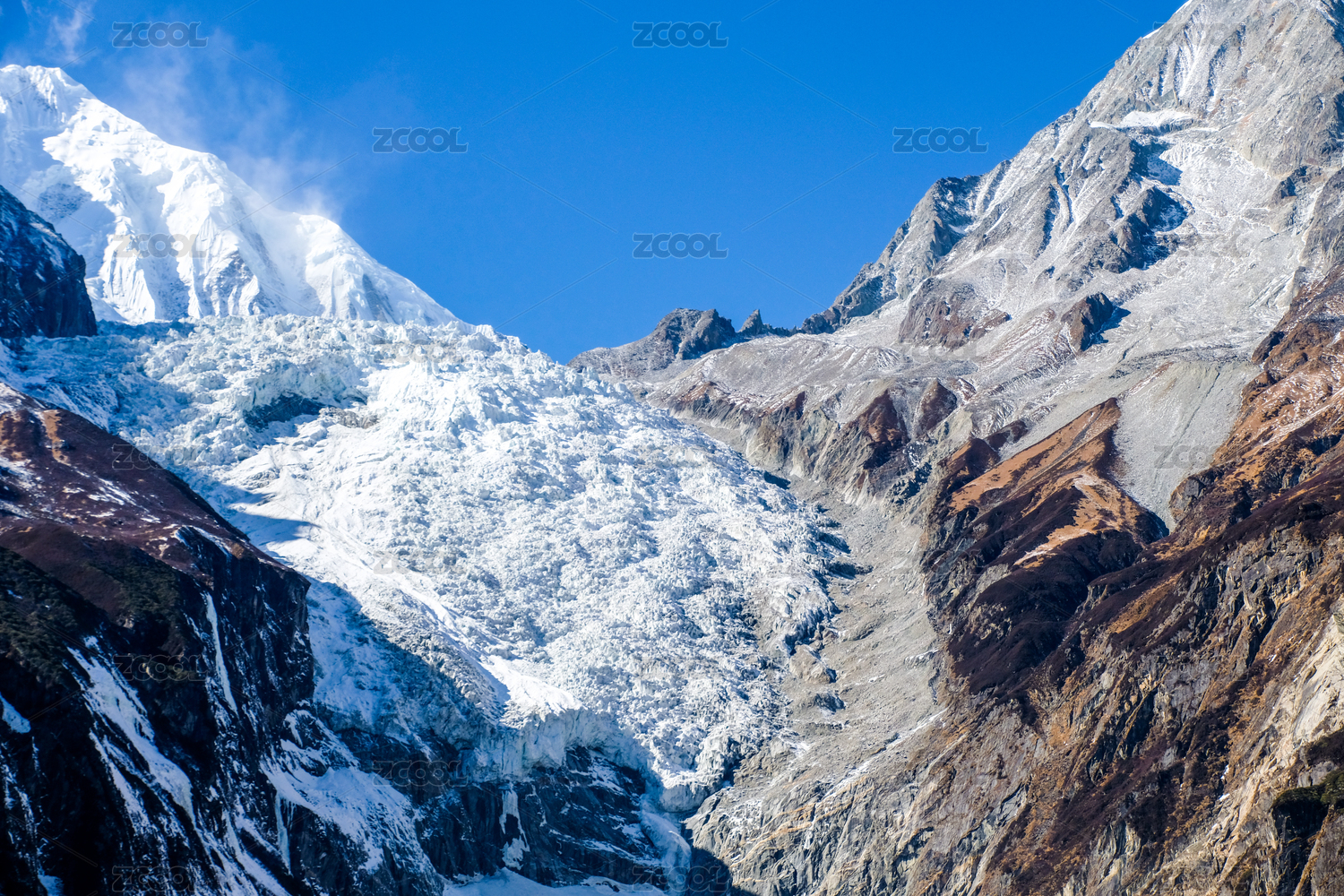 中国西藏喜马拉雅山脉有蓝色冰川的雪山