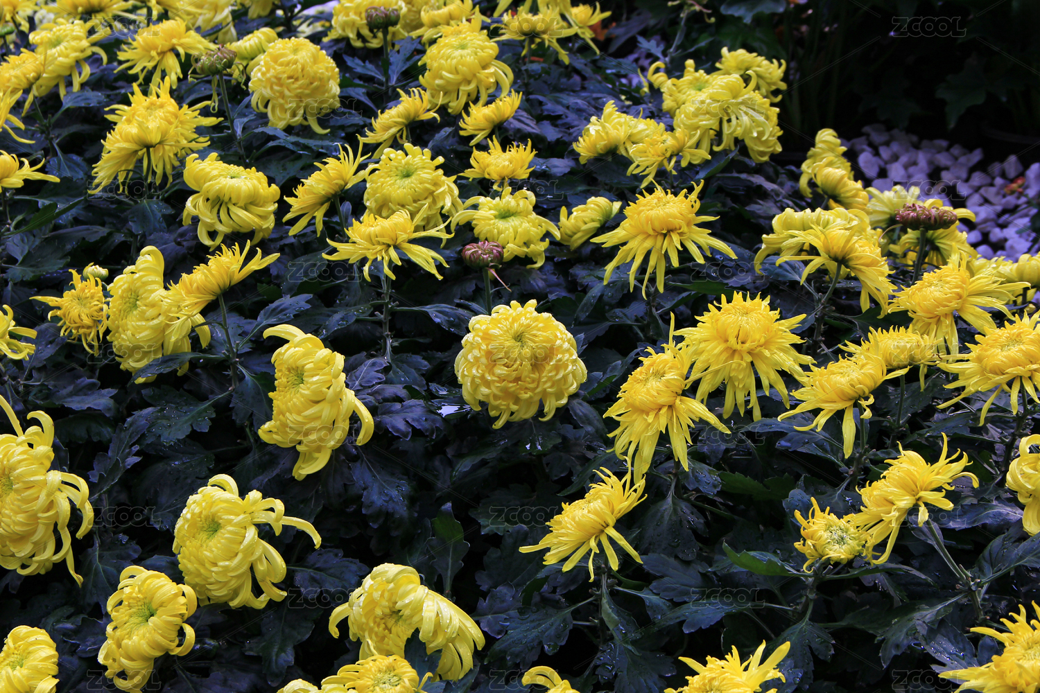 花园里种植的成片盛开的菊花