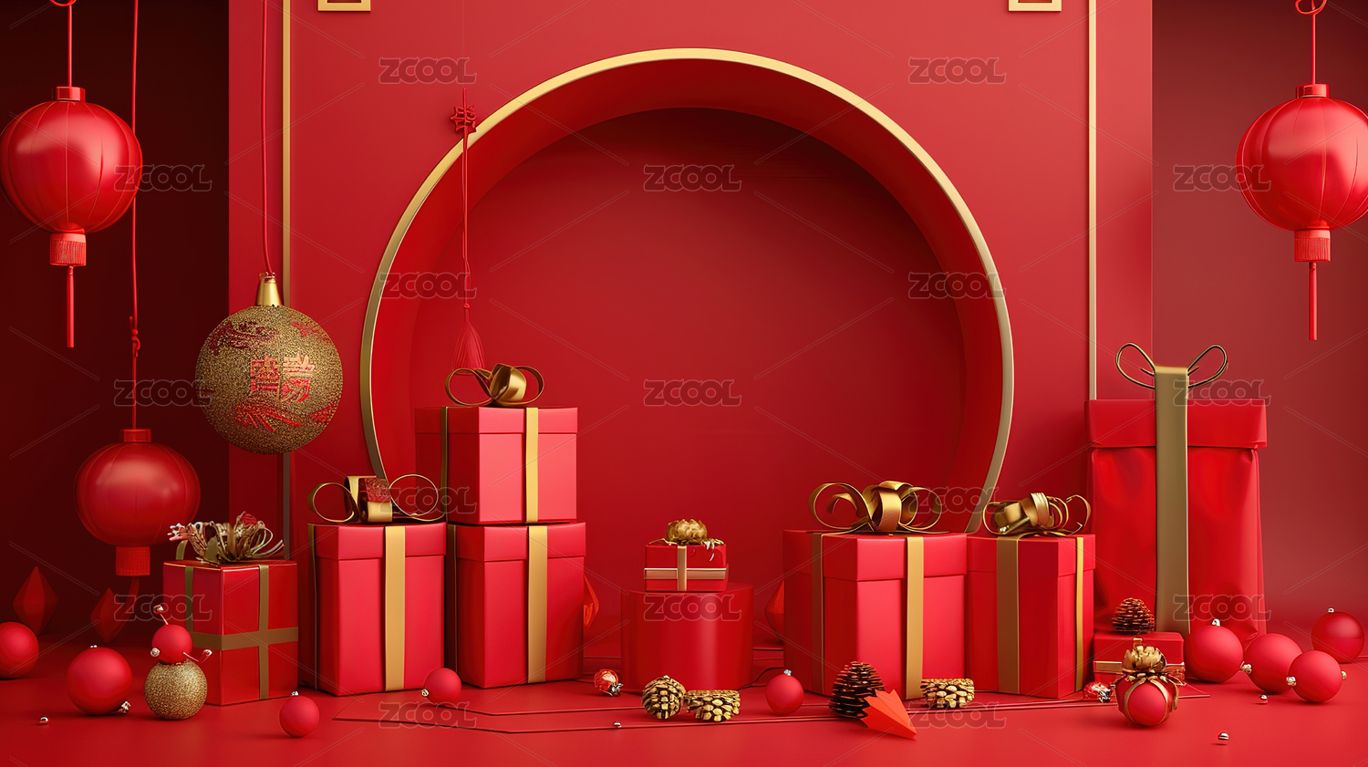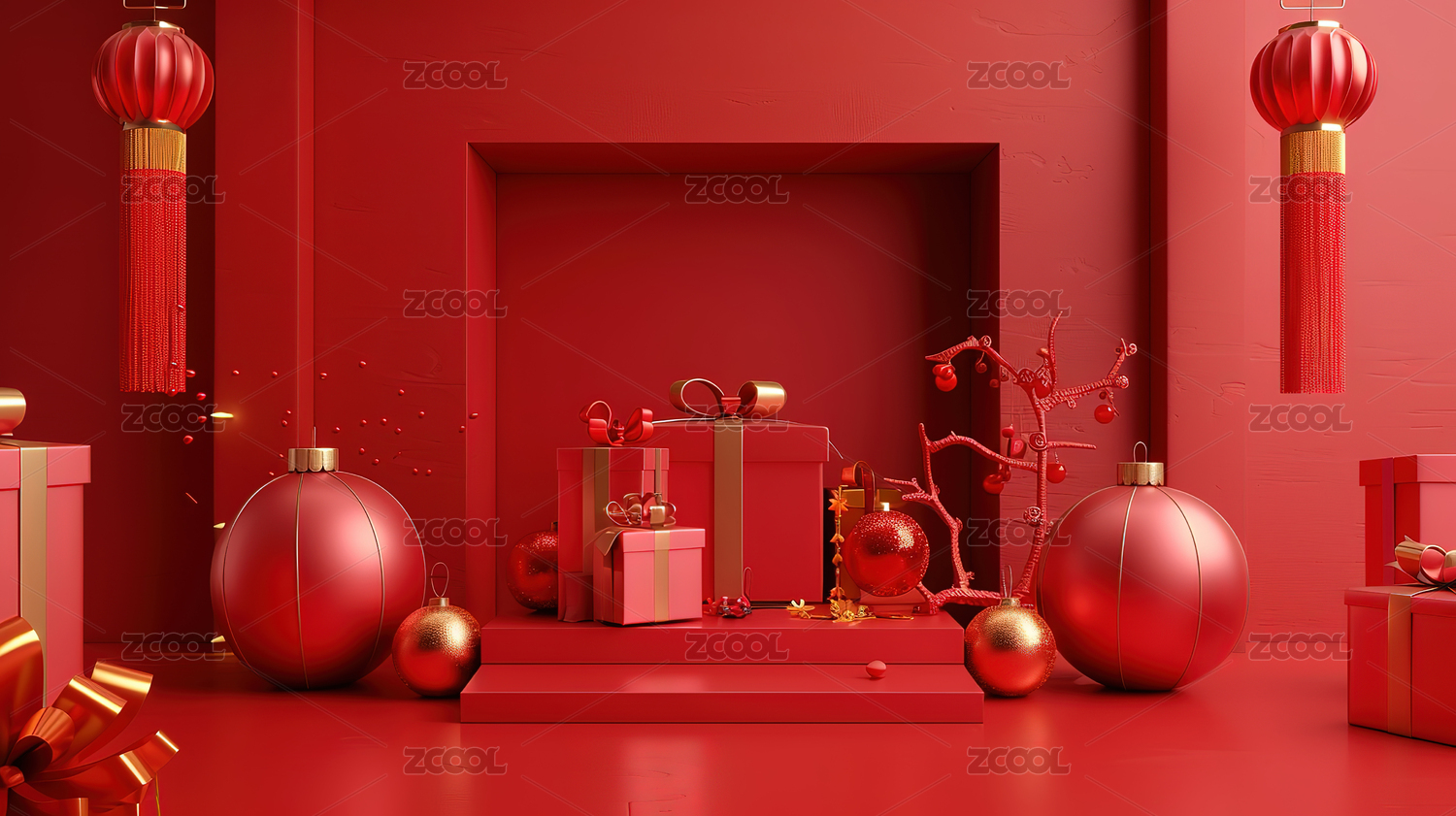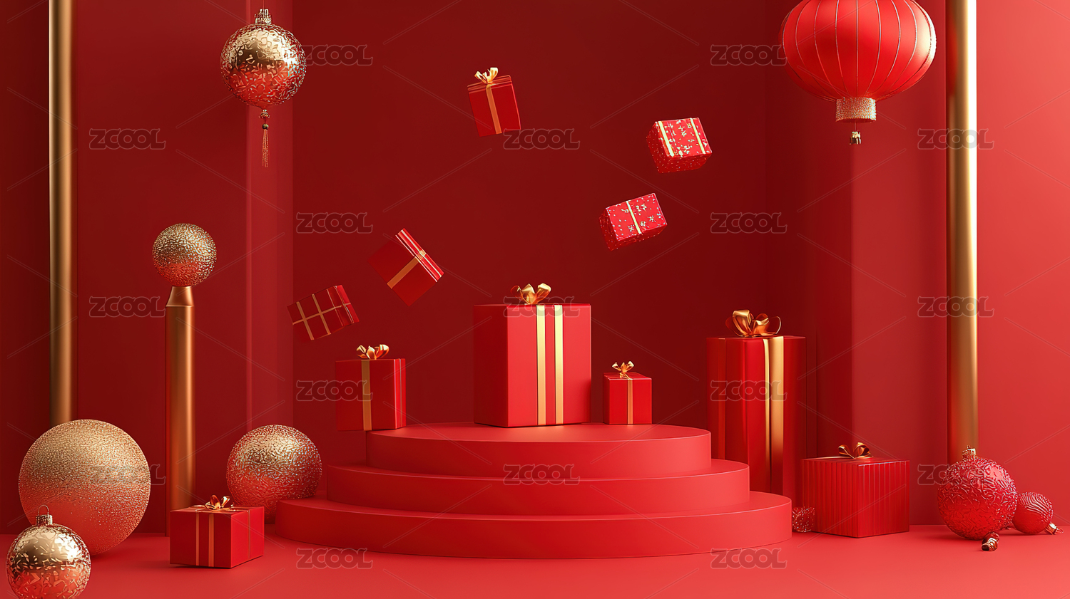 3D,背景,产品,传统,创意,灯笼,电商,过年,红色,节日